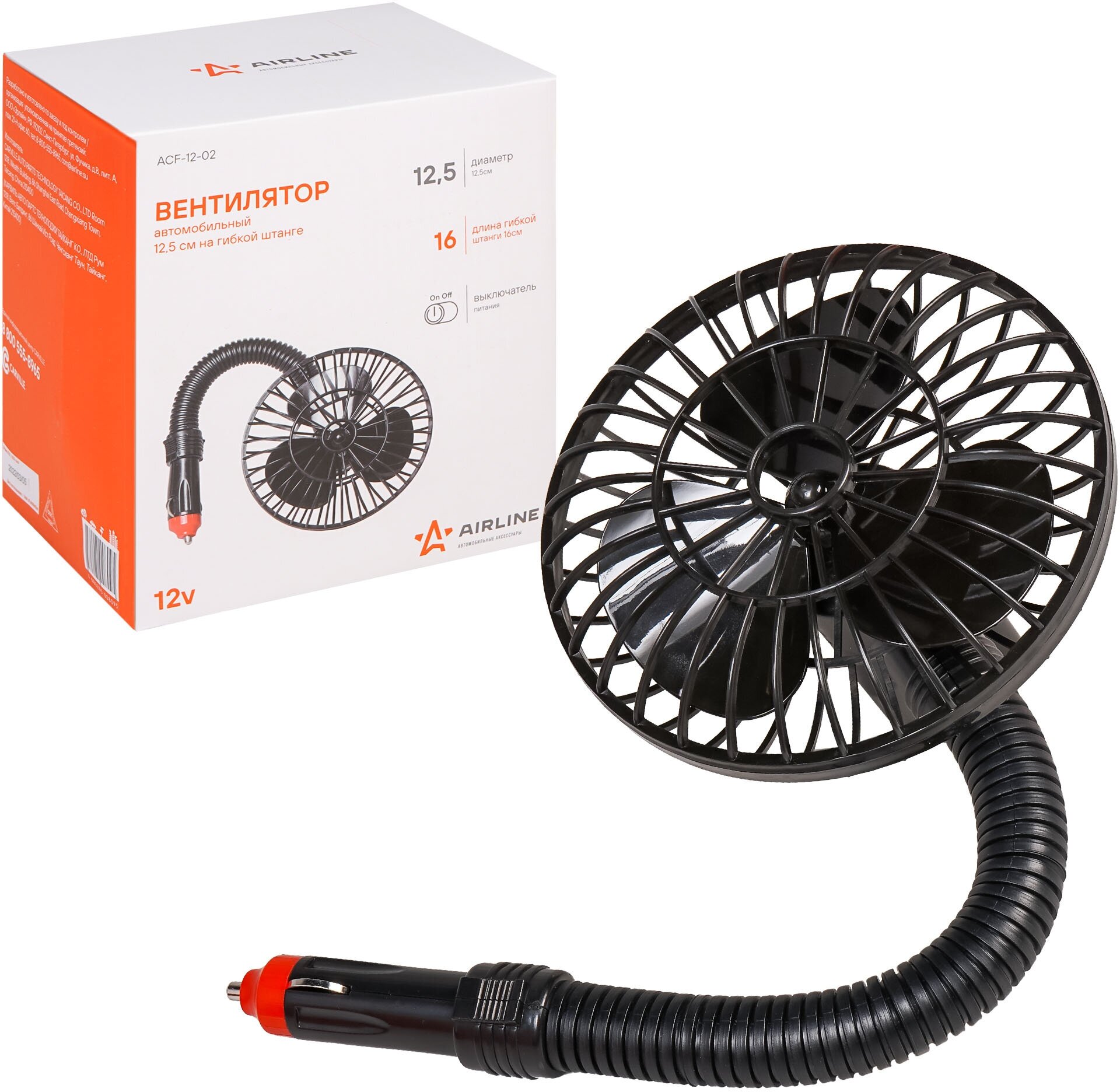 Вентилятор в салон AIRLINE ACF-12-02, на гибкой штанге в прикуриватель, 12.5см, 12В