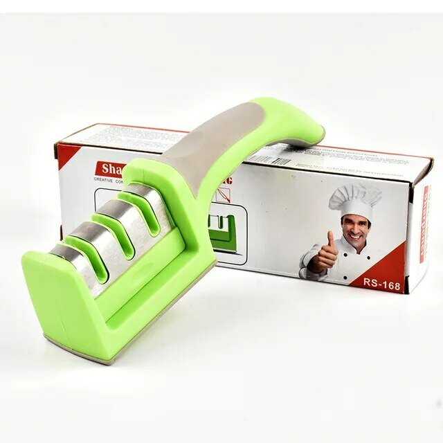 хорошая ленивая точилка для быстрой правки и заточки каждодневных ножей. на первых роликах не увлекайтесь - металлический быстрорез ощутимо срезает стружку с ножа. 2 и 3 нормально для правки кромки. за 136? отлично