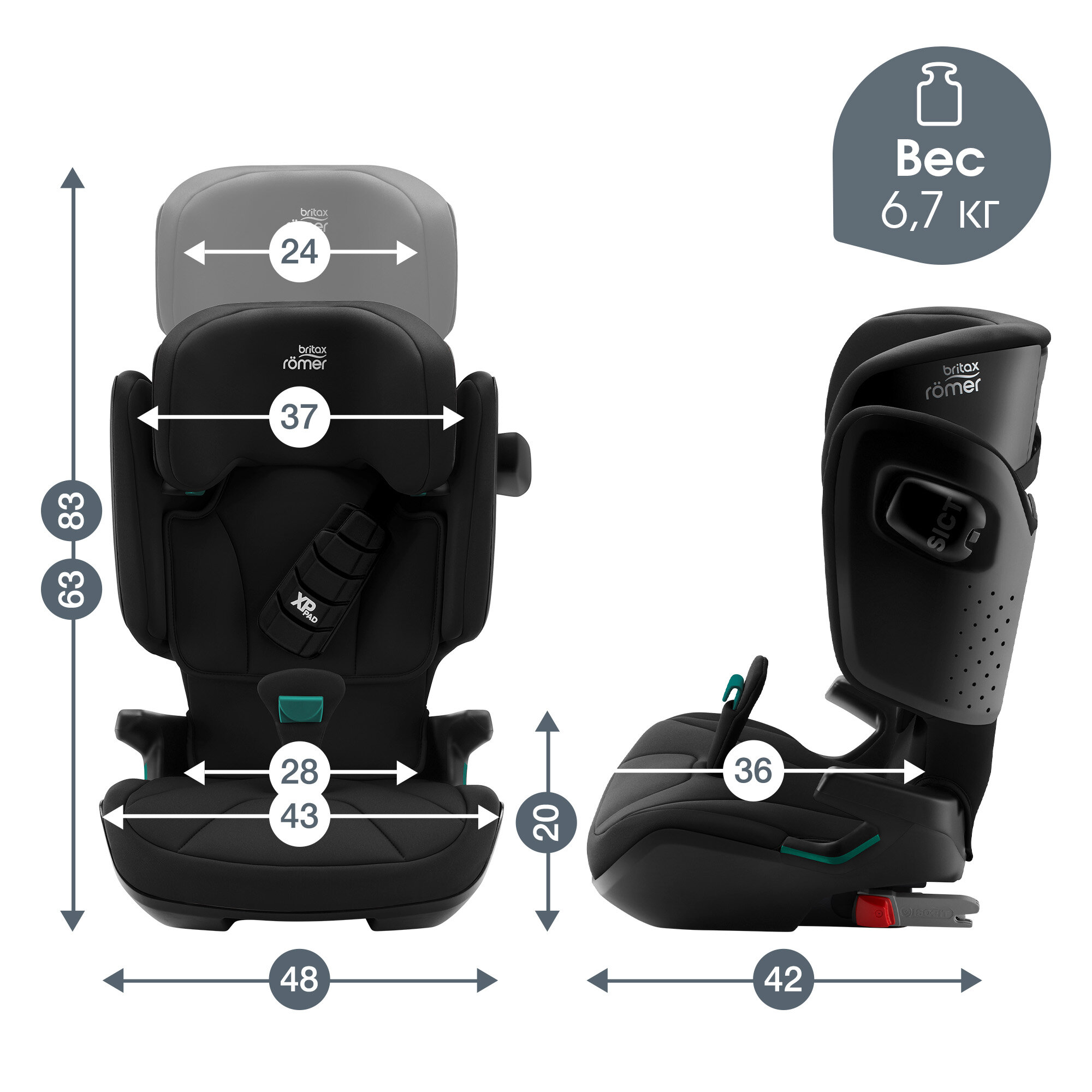 Детское автокресло Britax Roemer KIDFIX i-SIZE Cosmos Black, для детей от 3,5 до 12 лет, ростом 100-150 см, весом 15 - 36 кг, с isofix
