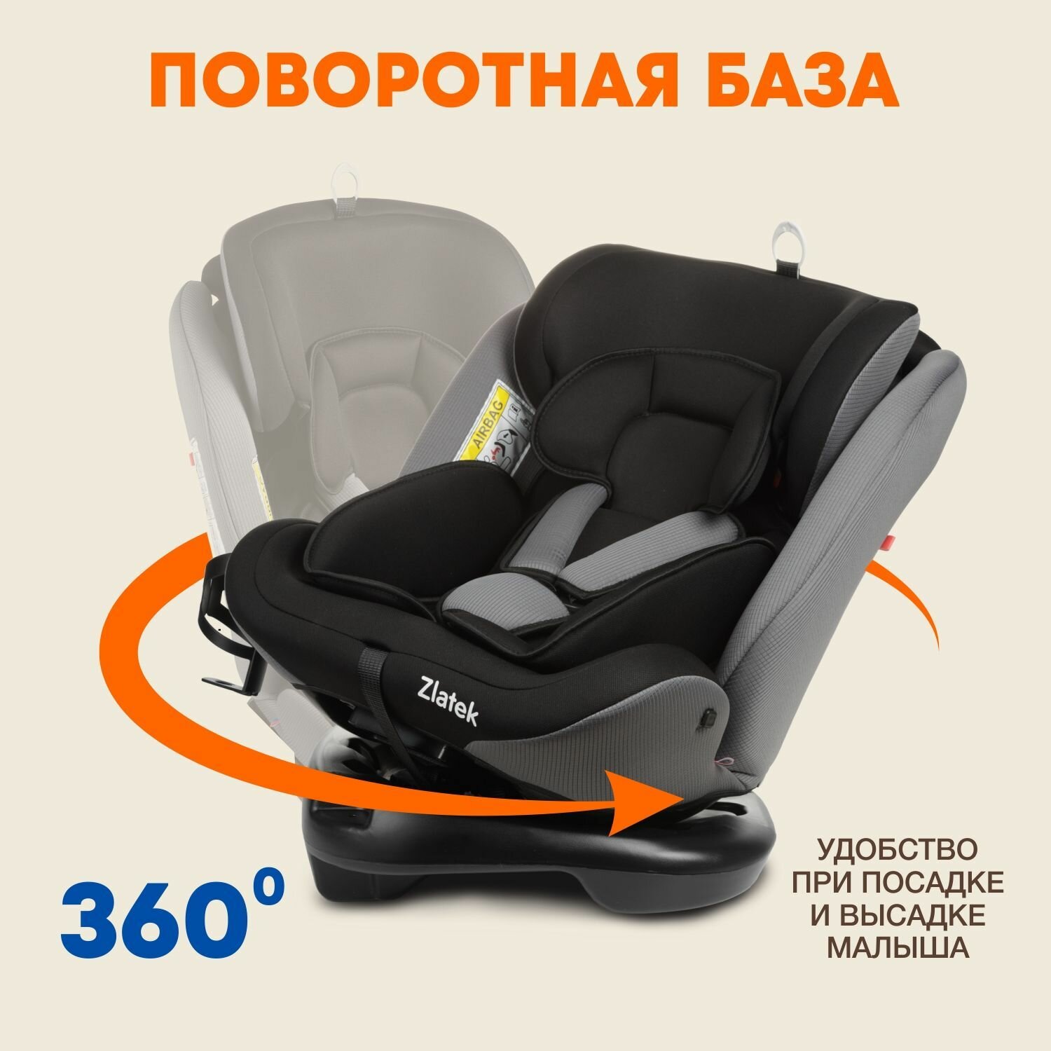 Автокресло детское Zlatek Cruiser Isofix поворотное с рождения до 12 лет / Isofix / 0+/1/2/3/до 36 кг 0-36кг / 0-12лет, серо-черный