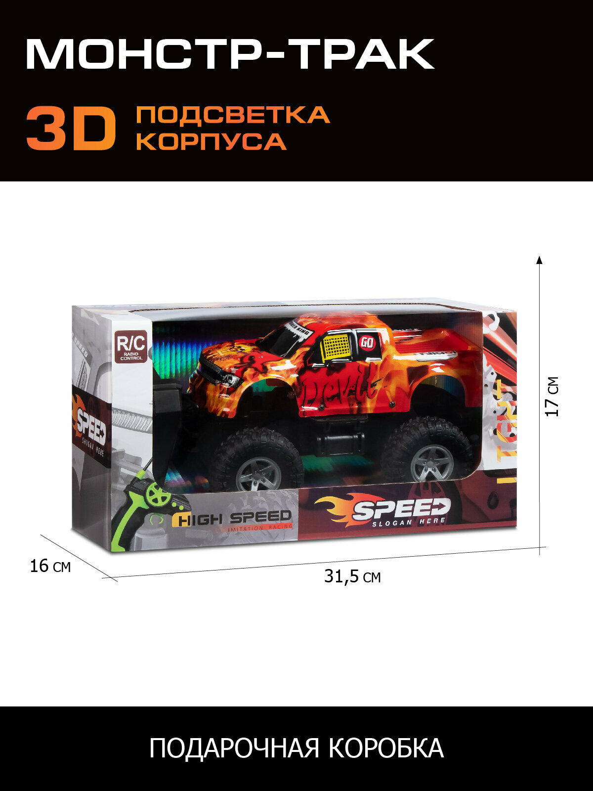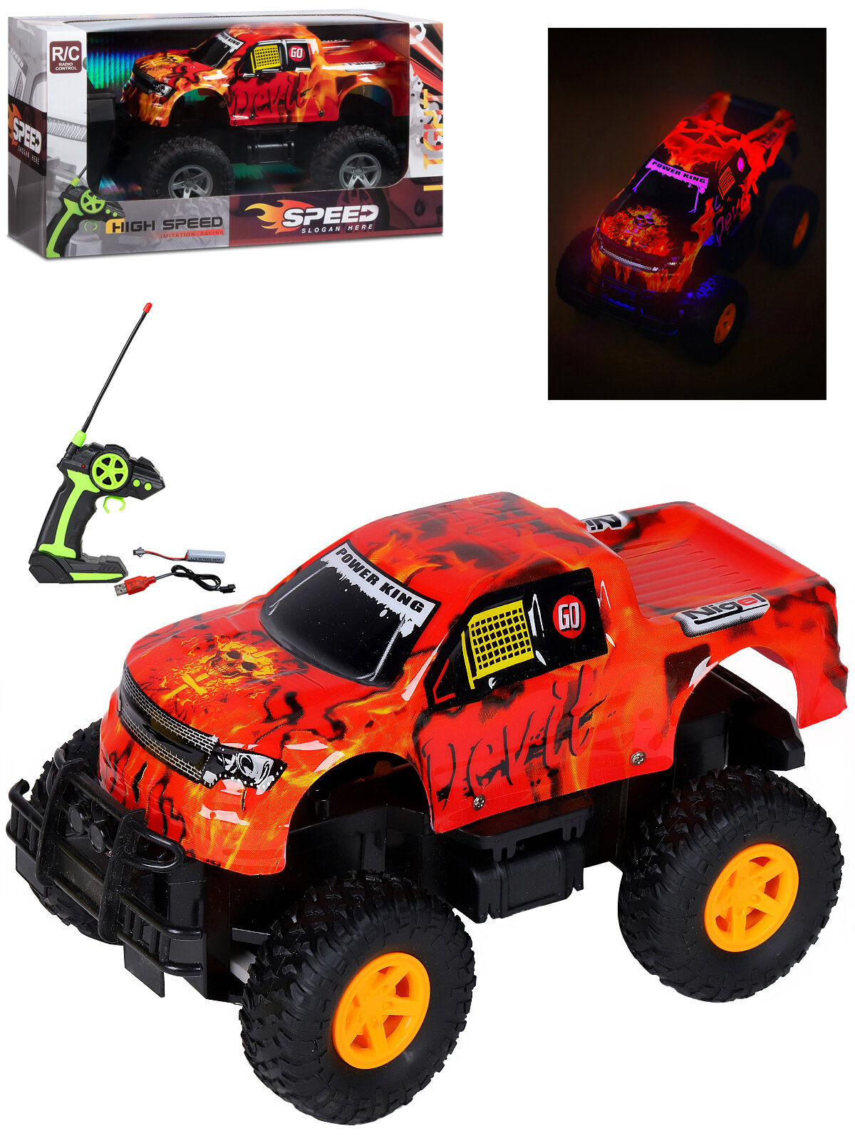 Купить Радиоуправляемая машина ТМ Джамбо Тойз с 3D подсветкой корпуса, 4 канала, М1:16, пульт управления, оранжевый, JB0405265
