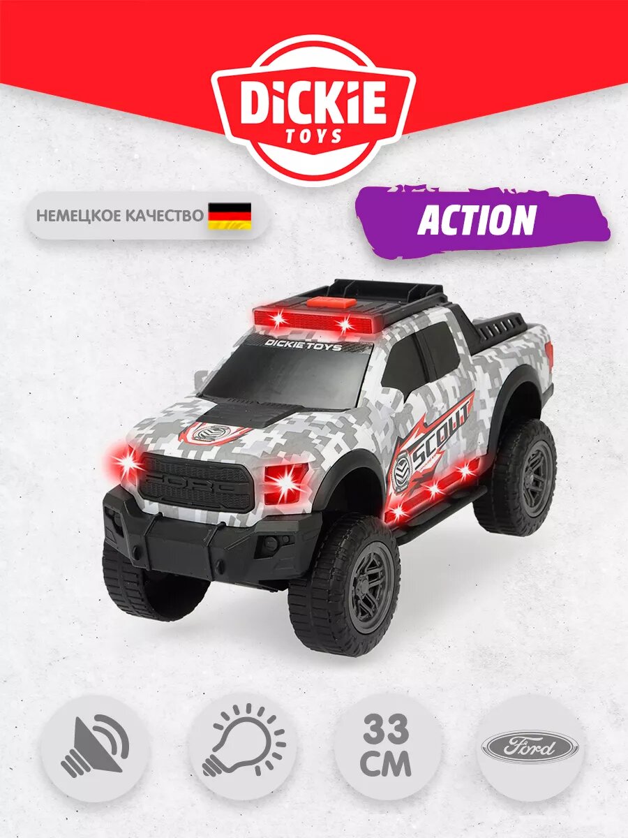 Машинка Dickie Toys Scout Ford F150 Raptor, 33 см, свет, звук