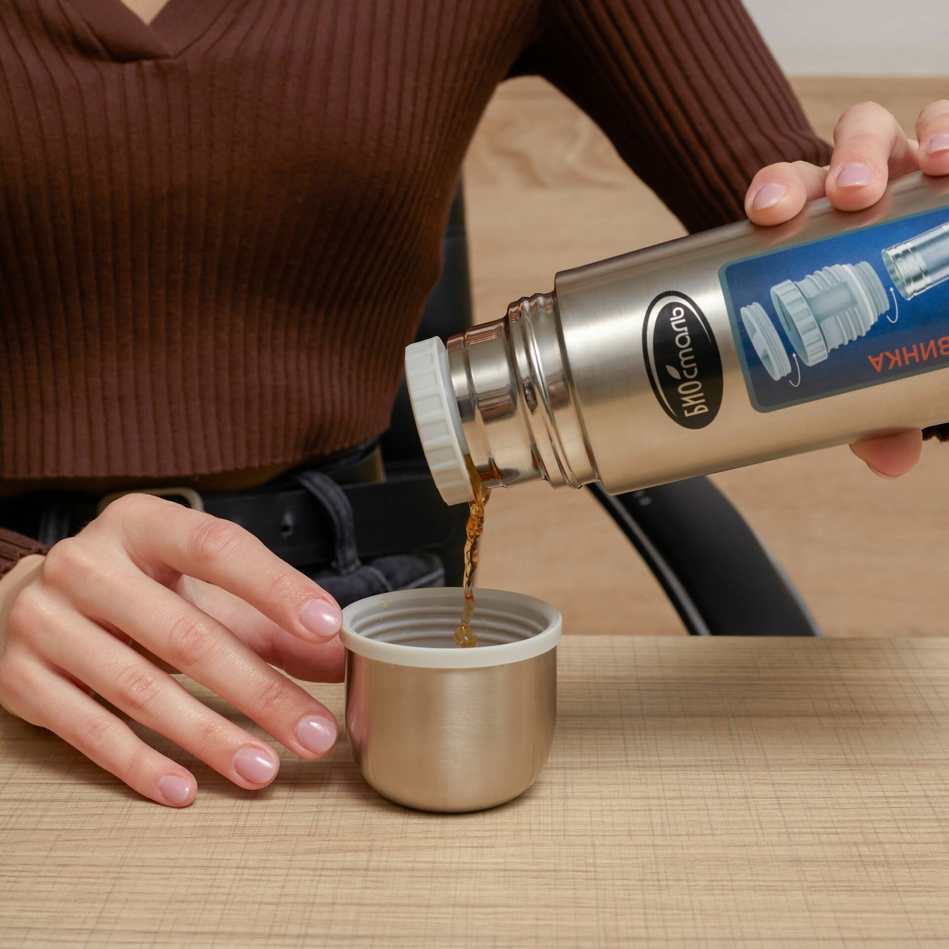 Термос классический Вакуумный с узкой горловиной, пробка-контейнер с ситичком, чехол Биосталь/Biost (1),NB-1000BZ