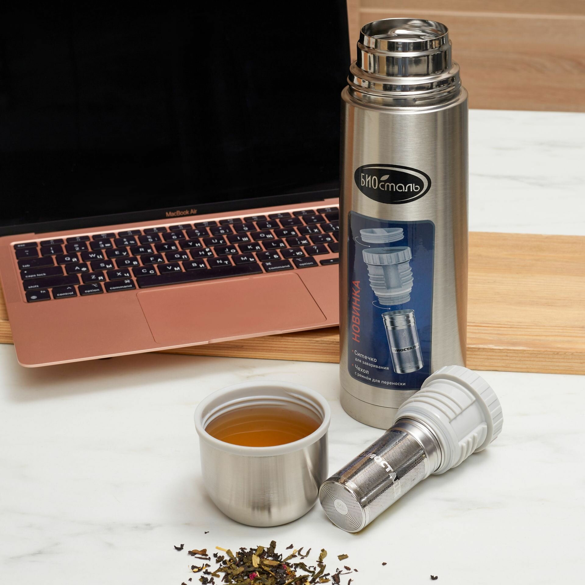 Термос Biostal (0,75 литра), с ситечком и чехлом, стальной