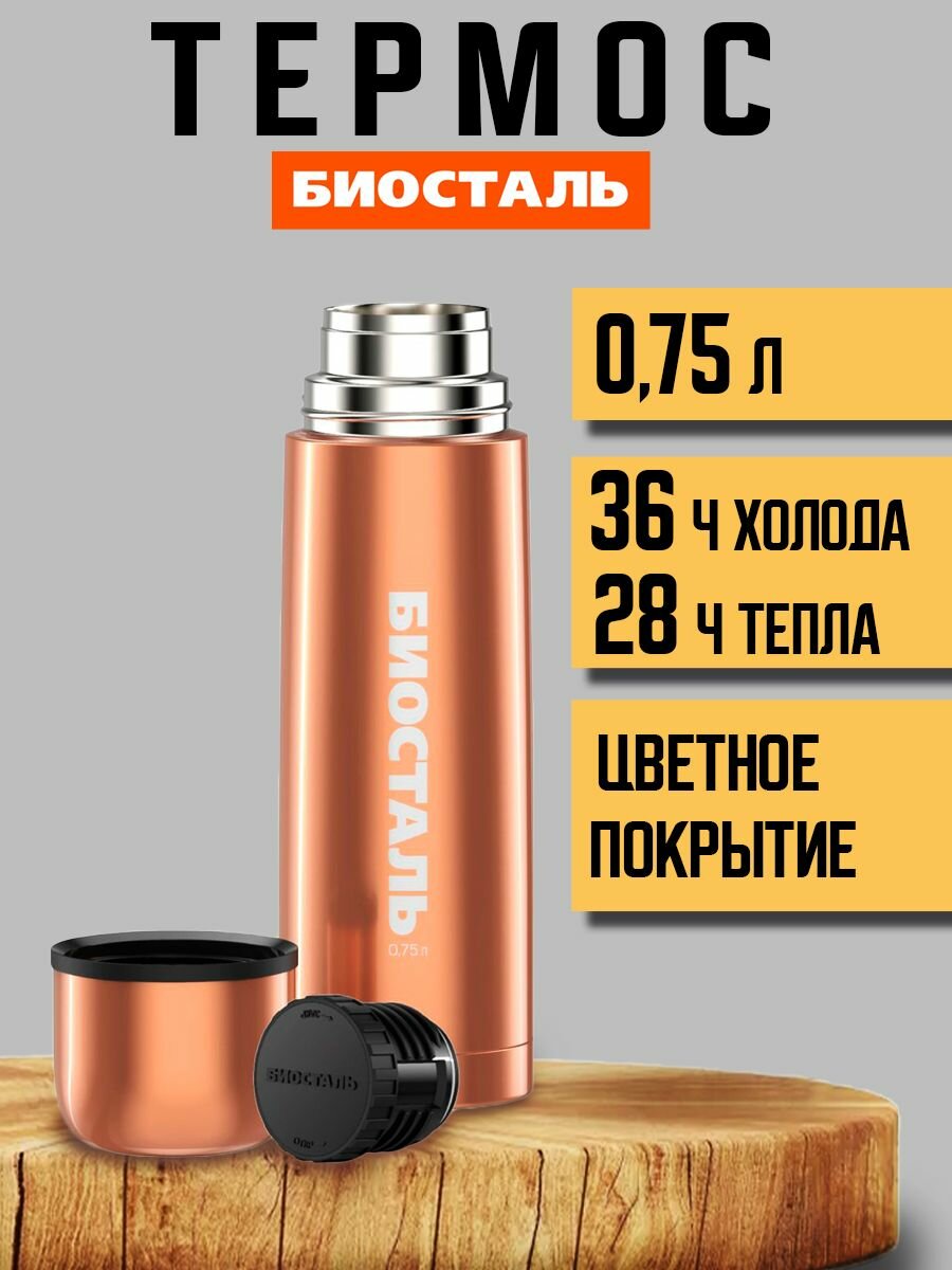 Купить Биосталь Термос Вакуумный, Крышка-чашка, "Античная Бронза" 0,75 л.