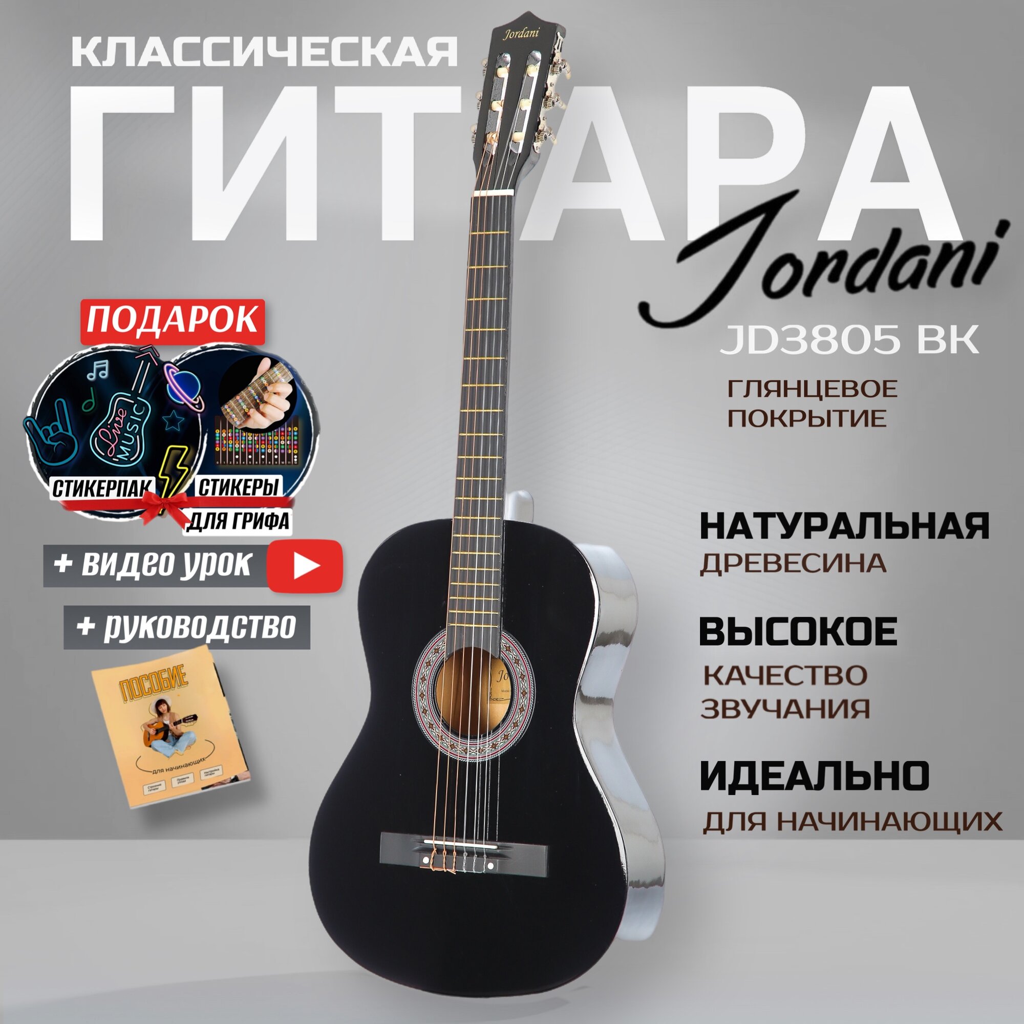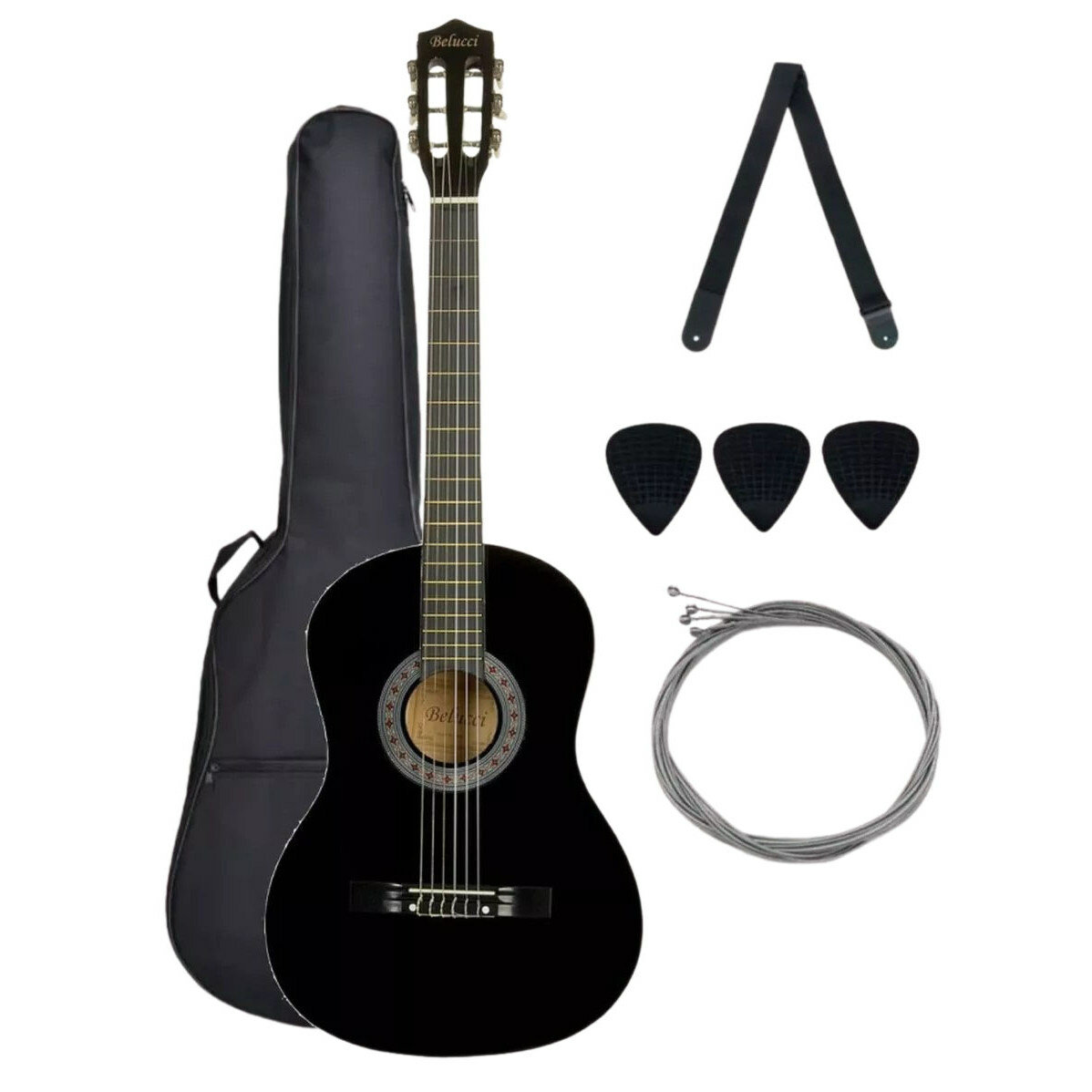 Гитара классическая 38" 7/8 Чёрная (Набор начинающего гитариста, Belucci BC3805 BK)