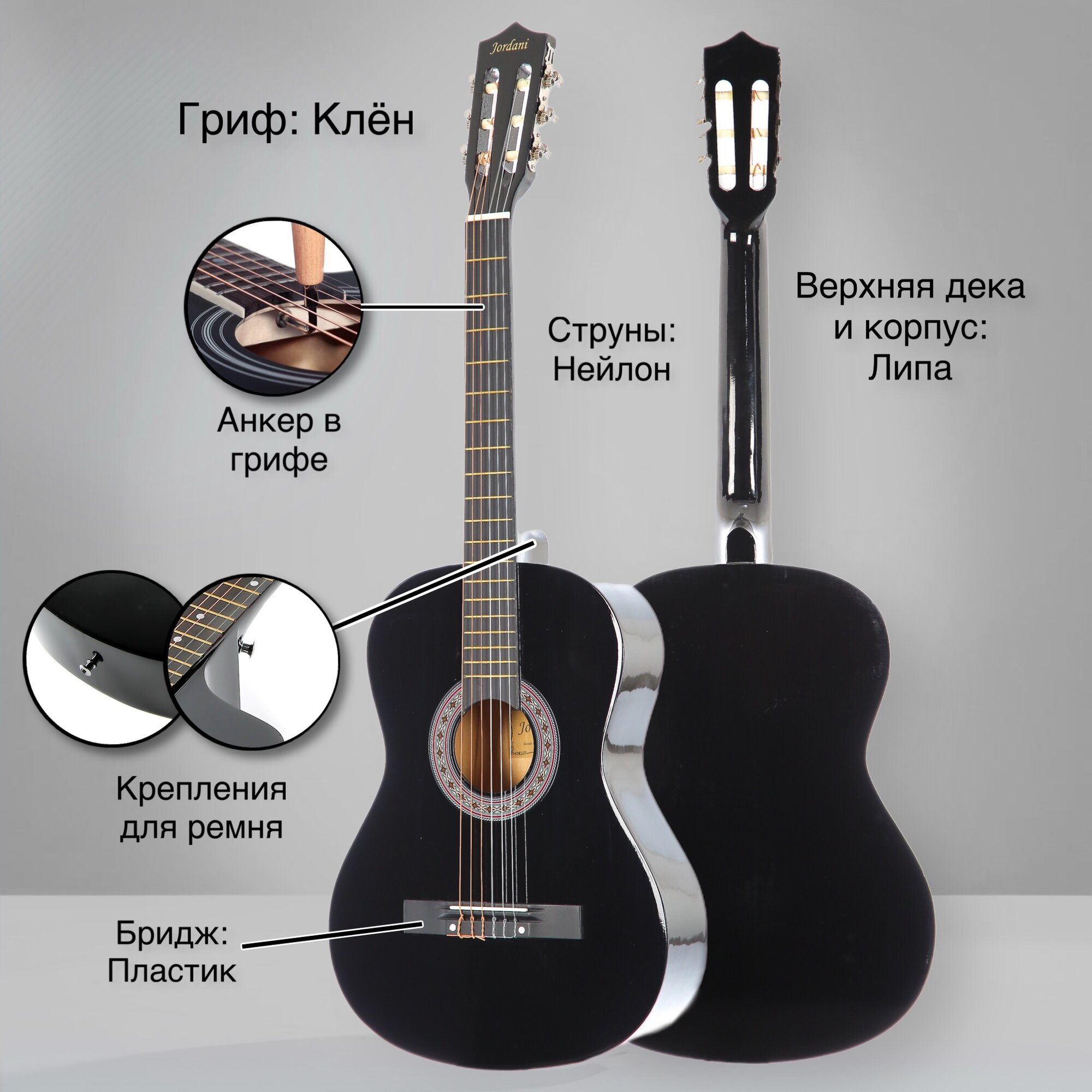 Классическая гитара 7/8 Belucci BC3805 BK , 38" дюймов,черная интересное: