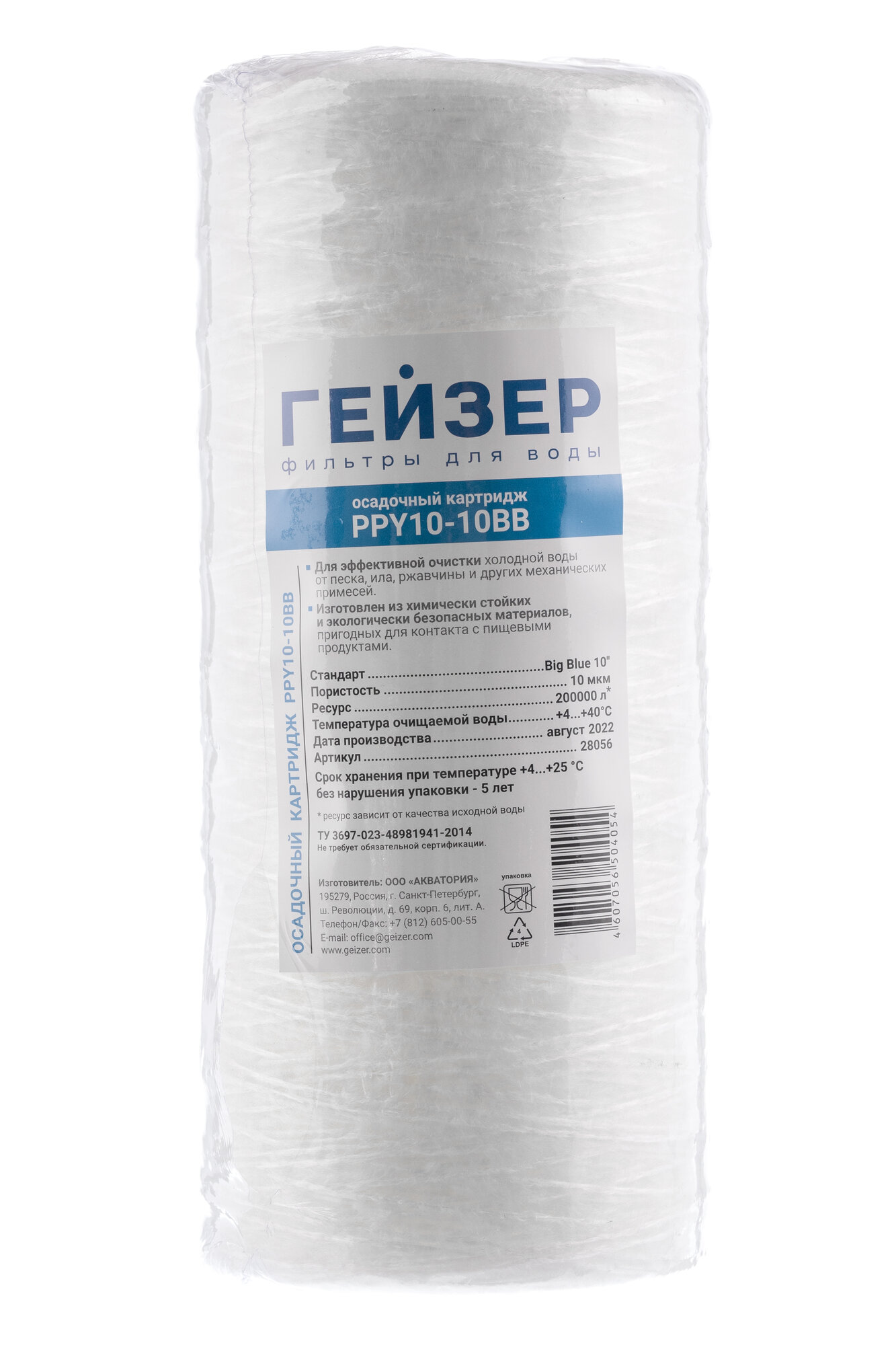Полипропиленовый картридж механической очистки / полипропиленовая нить Гейзер PPY 5 для холодной воды - 10BB, 28050 - 1 шт.