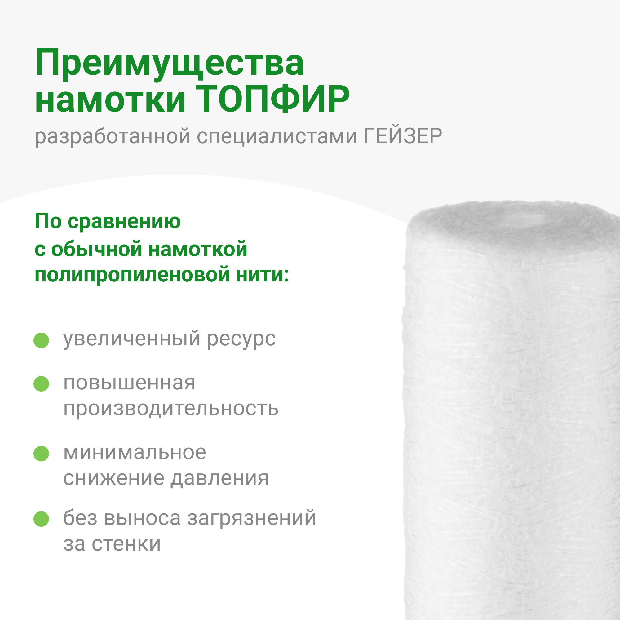 | Плюсы: | Примерно первый куб вода после него пенится. Производитель утверждает что это избыток кислорода в волокнах, а покупатели склоняются к химии в волокнах, но для труб на даче это хорошо. |