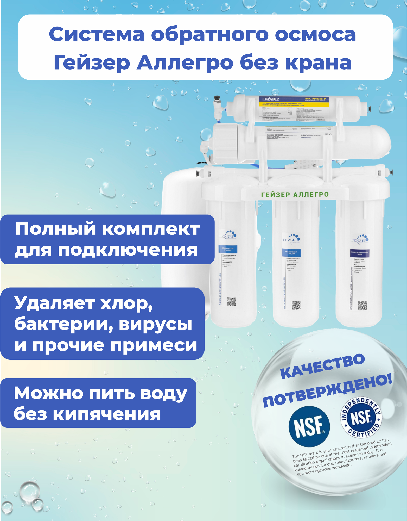 Купить Гейзер Аллегро Без крана обратный осмос / фильтр для воды