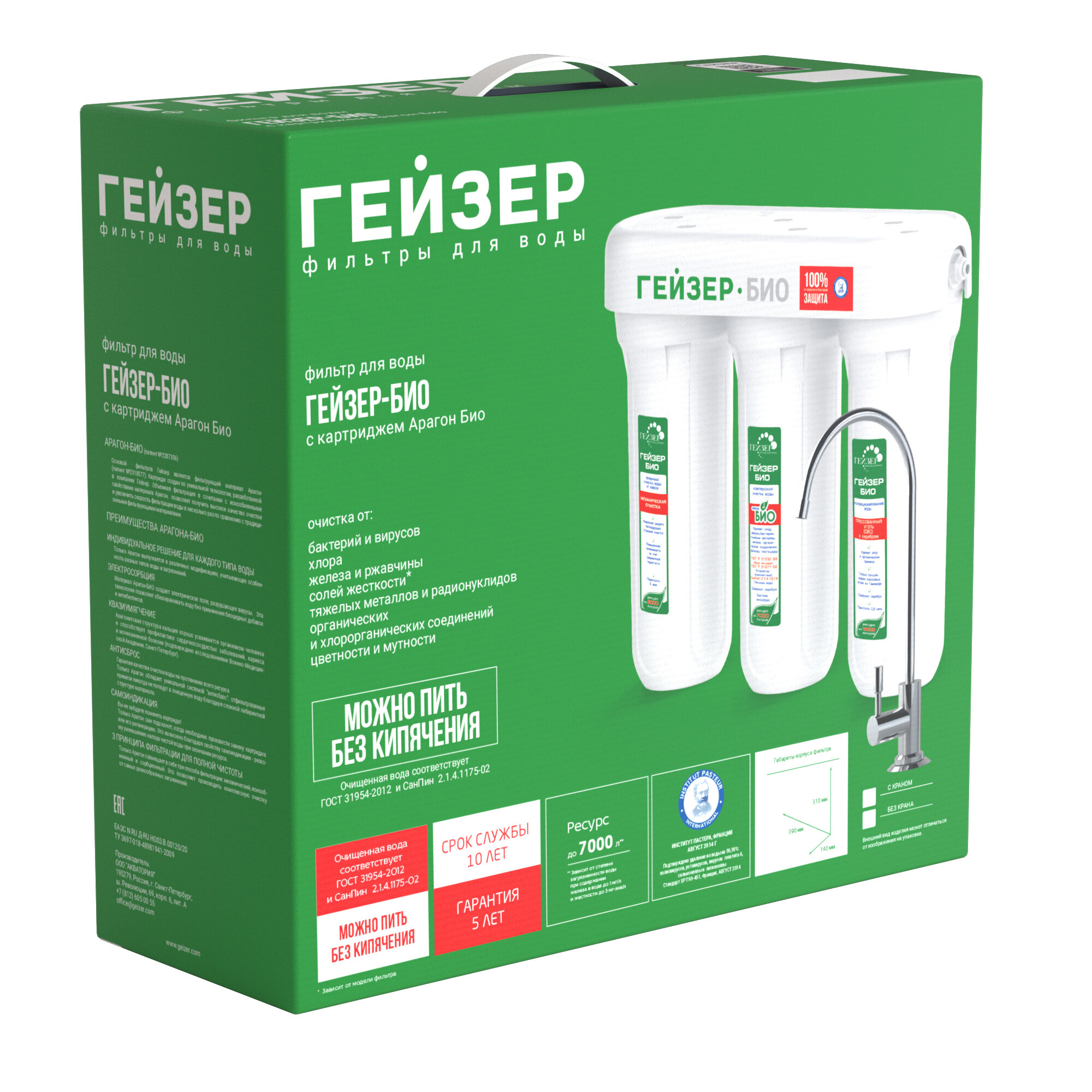 Купить Фильтр для воды под мойку Гейзер Био 331, с краном, идеальное решение для семей с маленькими детьми, 100% удаление бактерий и вирусов, 16016