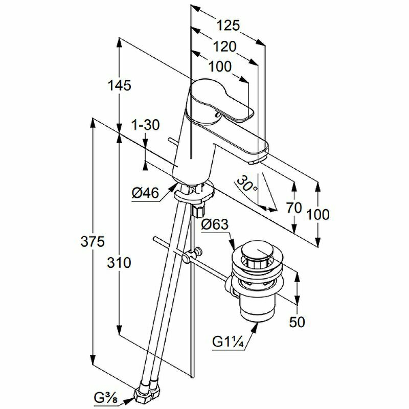 Pure&Easy, смеситель для умывальника, неповоротный излив, с донным клапаном, расход воды 7 л/мин, арт. 372820565, Kludi