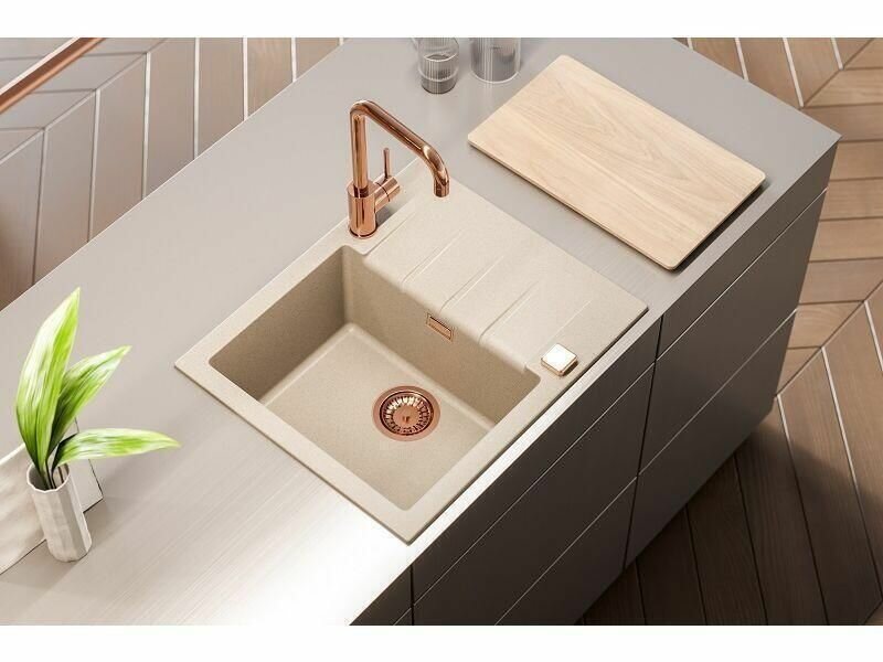 Мойка ALVEUS GRANITAL CADIT 10 BEIGE - G55 590 X 500 1X в комплекте с сифоном