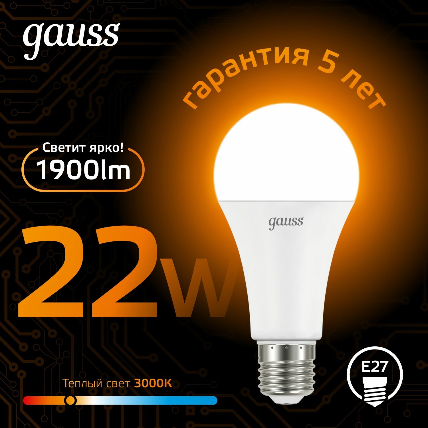 Купить Лампочка светодиодная Е27 Груша 22W теплый свет 3000К упаковка 10 шт. Gauss Black