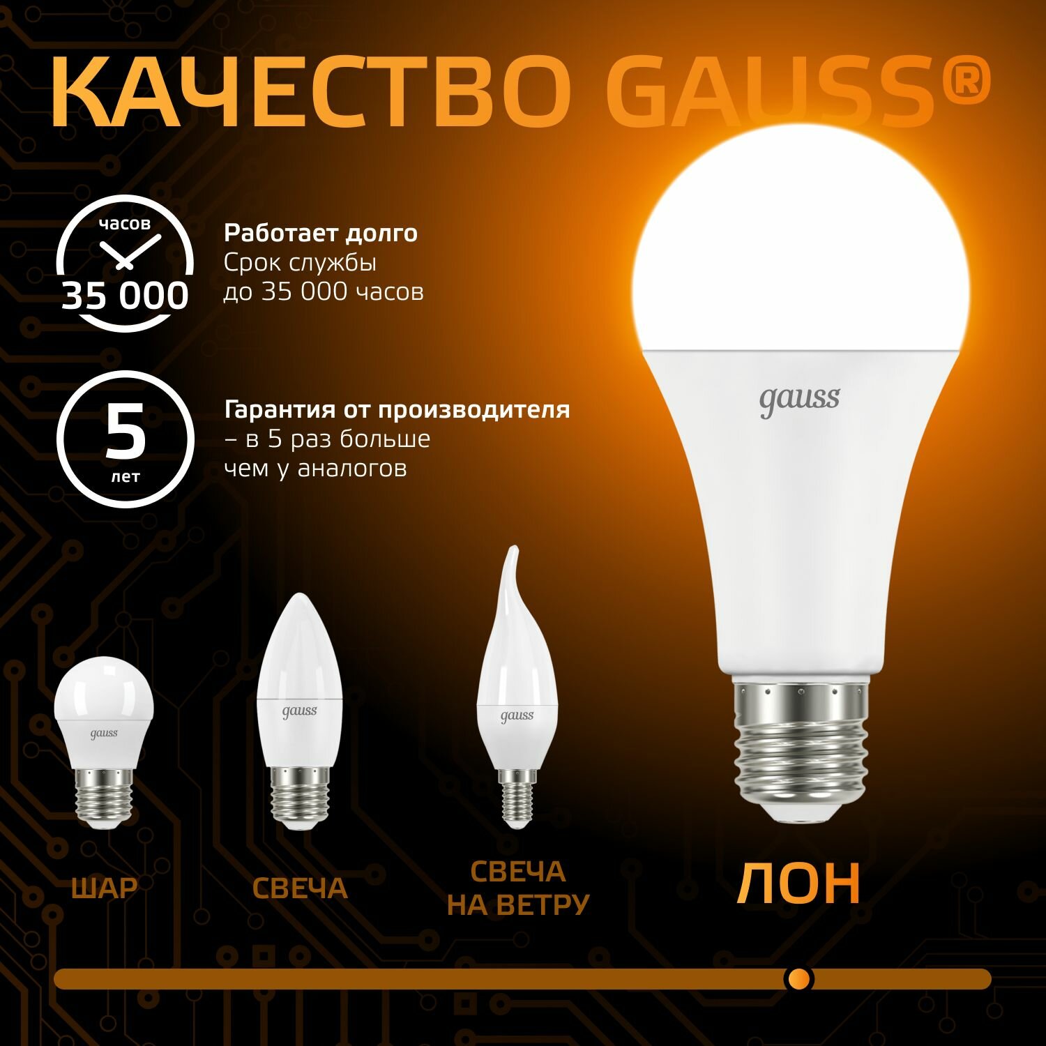 Лампа светодиодная gauss 102502122, E27, A70, 22Вт, 3000 К, упаковка 10 шт.