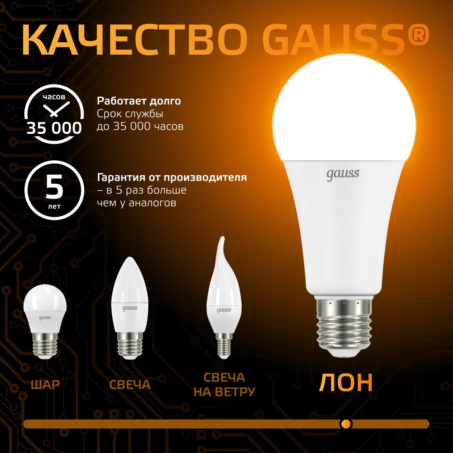 Лампа светодиодная gauss 102502122, E27, A70, 22Вт, 3000 К, упаковка 10 шт.
