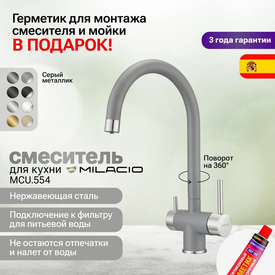 Смеситель для кухни Milacio Ultra с подключением фильтра, серый металлик (MCU.554.GR)