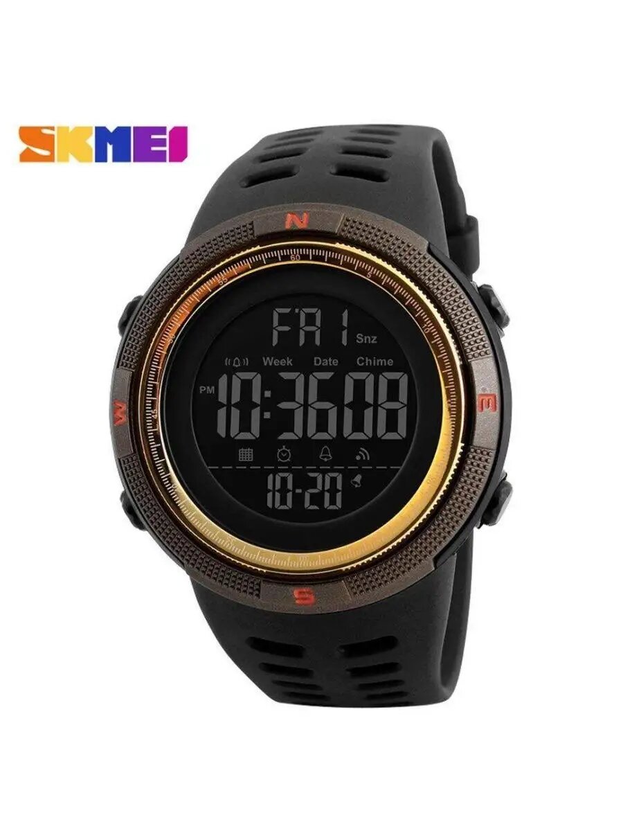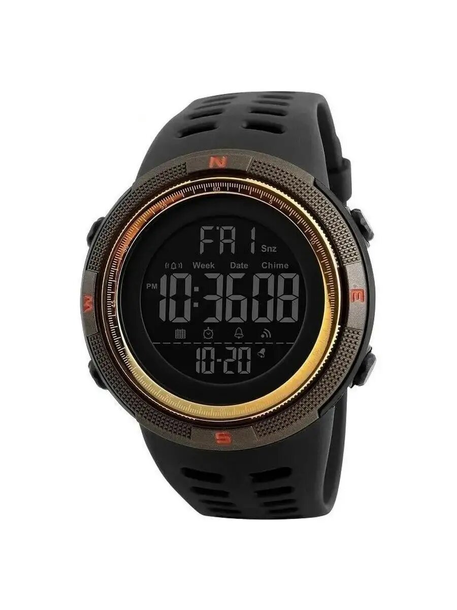 Часы спортивные мужские SKMEI-1251 черный-золотой, с секундомером, будильником, таймером, водонепроницаемые, скмей