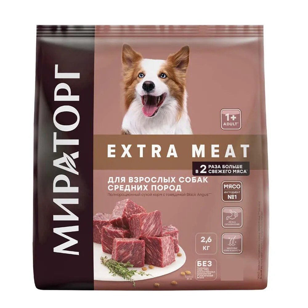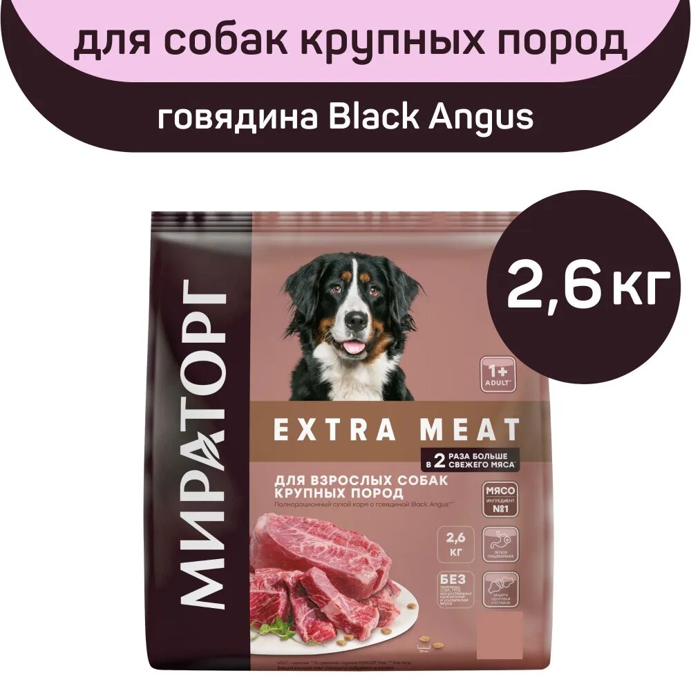 Сухой корм Мираторг Extra Meat для взрослых собак крупных пород старше 1 года, с говядиной Black Angus, 2.6 кг