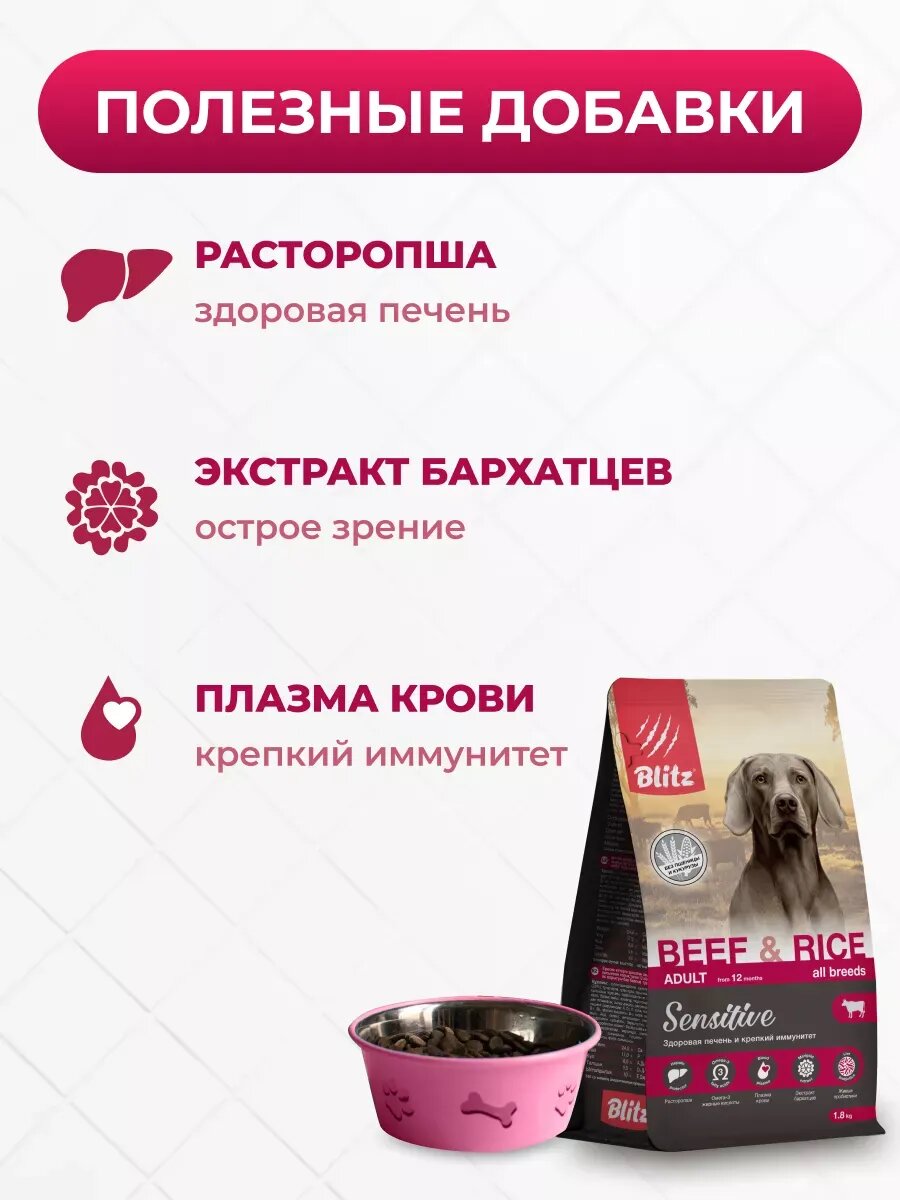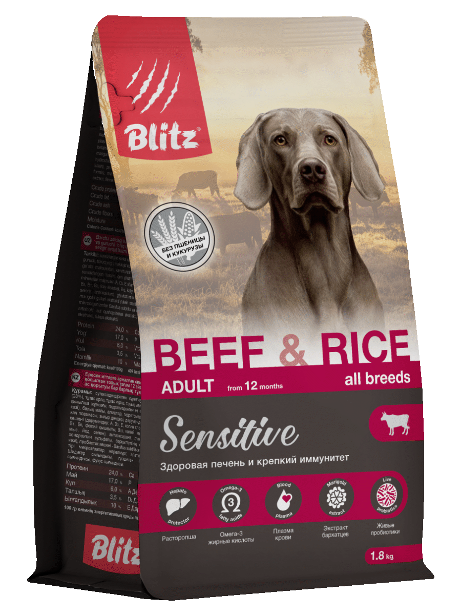 Купить Сухой корм для собак Blitz Sensitive adult Beef & Rice говядина и рис 1,8 кг