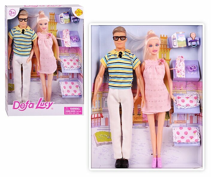 Купить Игровой набор DEFA Счастливая семья, в комплекте 3 куклы, предметов 5 шт