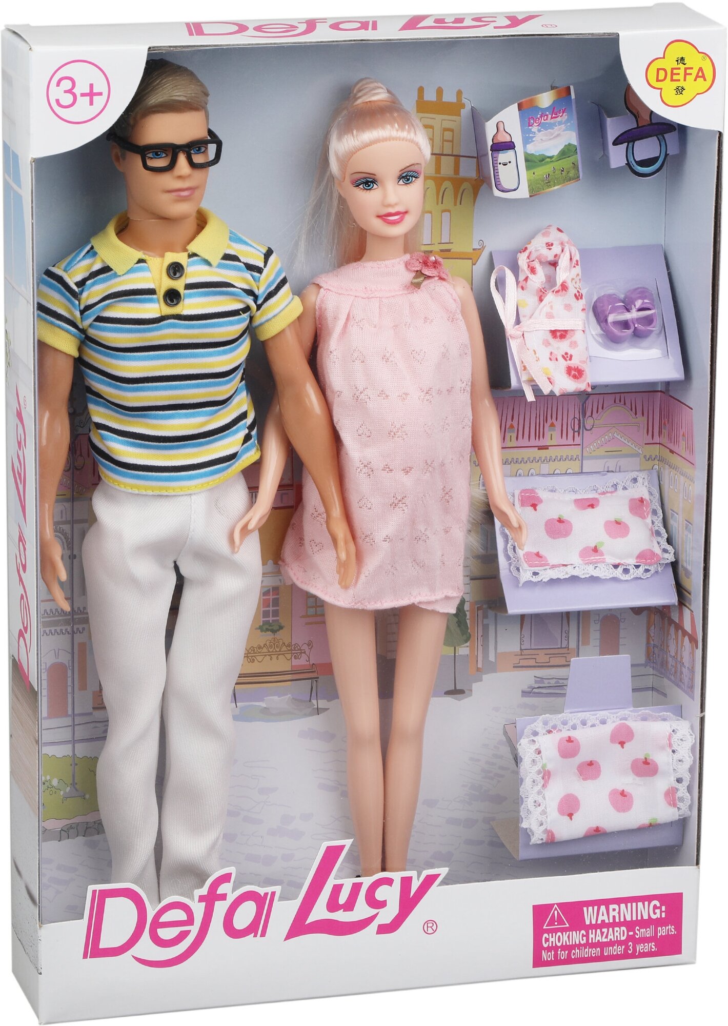 Игровой набор Defa Счастливая семья, в комплете 3 куклы, предметов 5шт, кор
