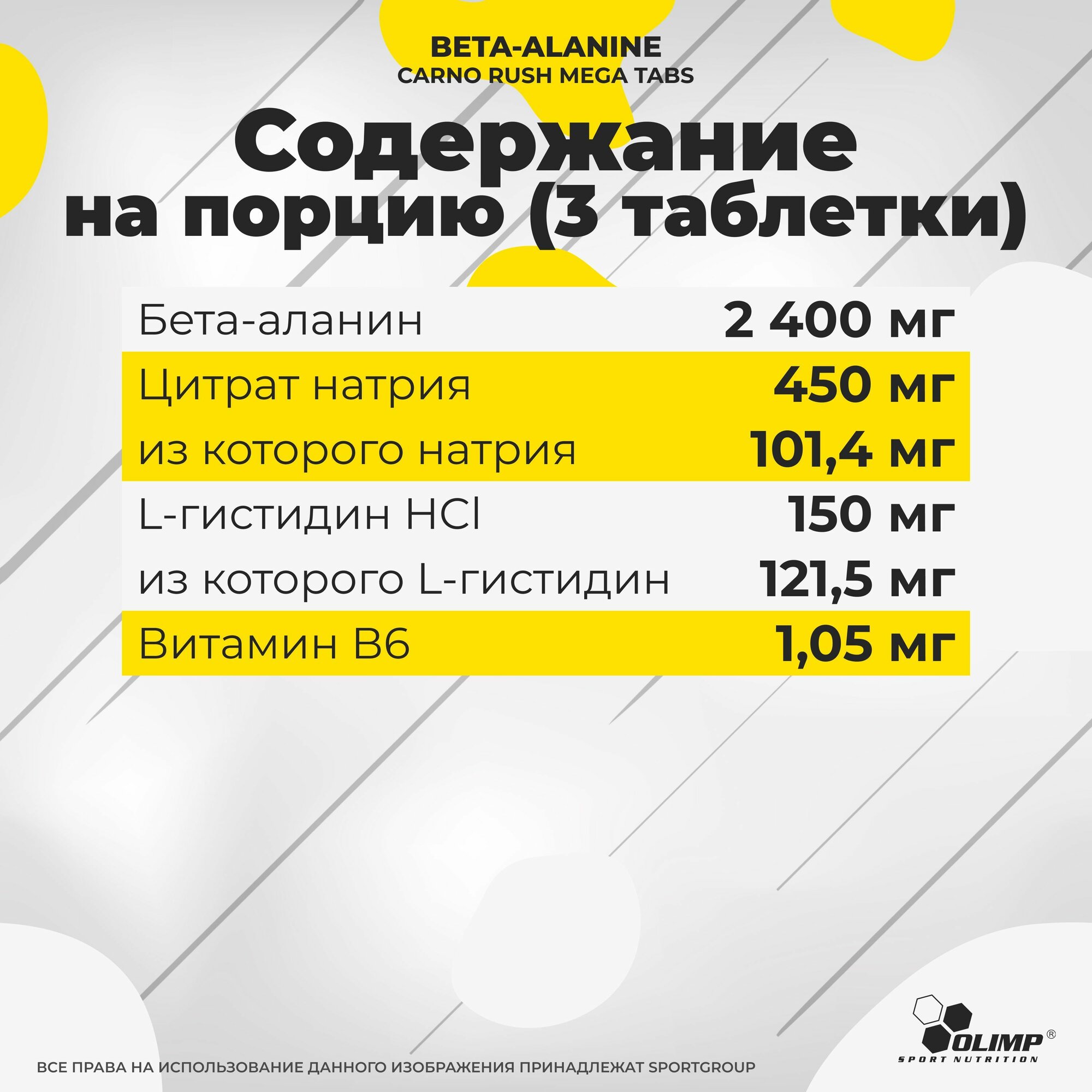 Бета-Аланин Olimp BETA-ALANINE CARNO RUSH MEGA TABS 80 таб.