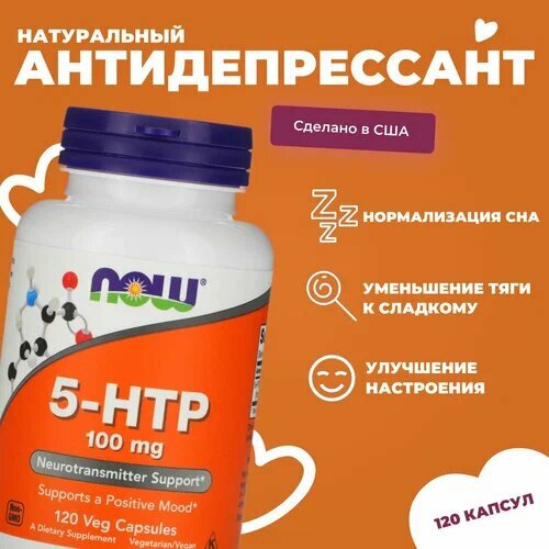 Сохранить5 HTP 100 мг 120 vcaps, NOW 5-HTP, Источник серотонина, Для нервной системы, При нарушении сна интересное: