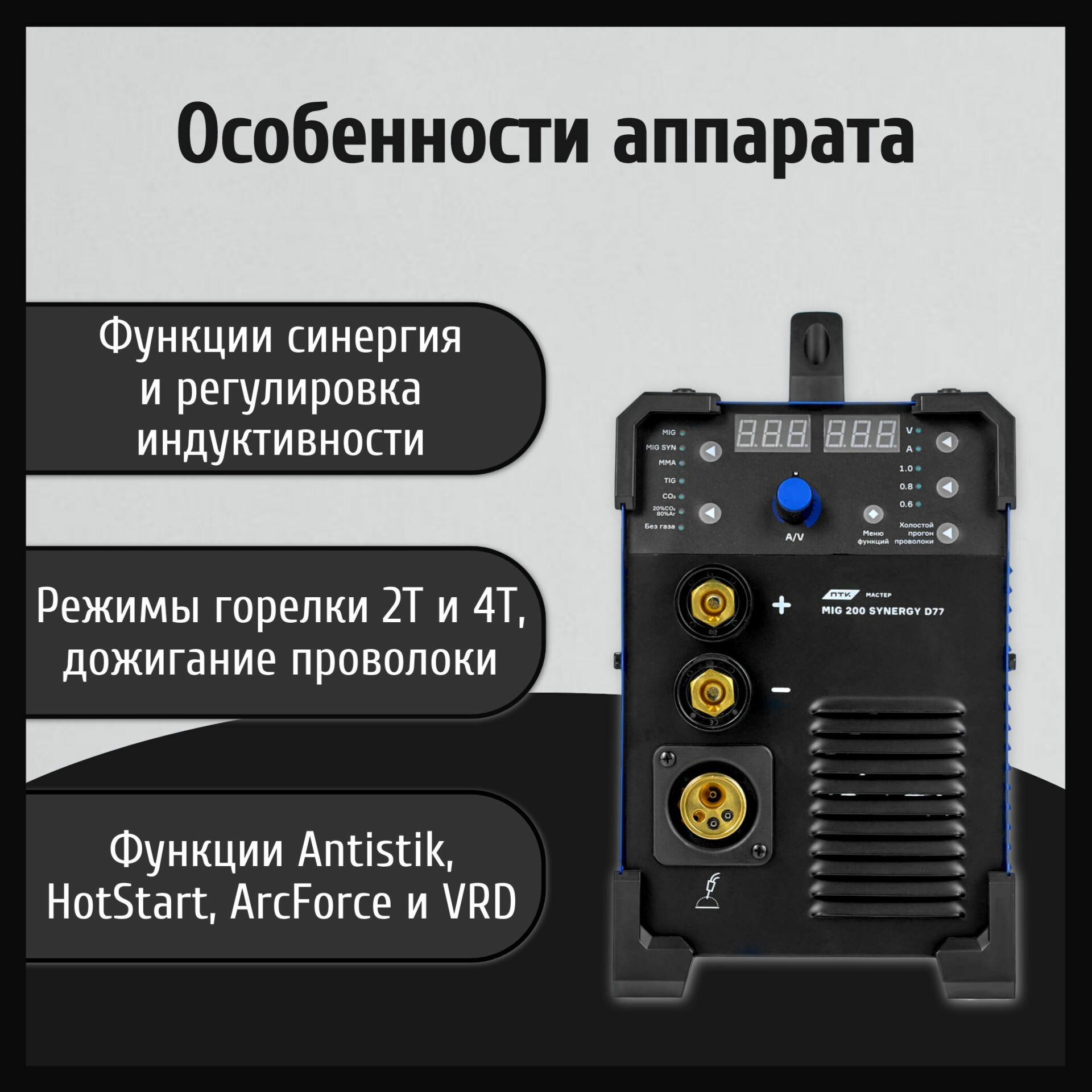 Сварочный аппарат полуавтомат ПТК мастер MIG 200 SYNERGY D77 Инверторный интересное: