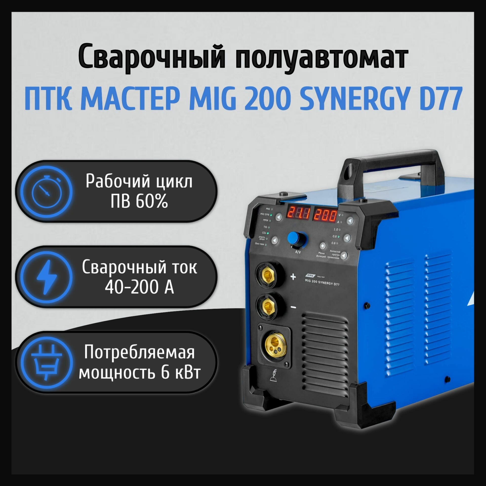 Инвертор сварочный ПТК мастер MIG200 Synergy D77