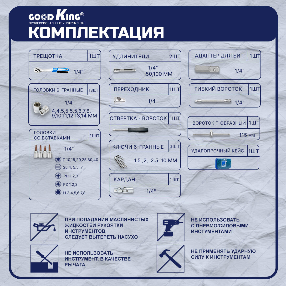 Набор инструментов GOODKING 53 предмета 1/4" трещотка B-10053