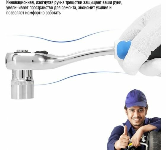 | Плюсы: | Компактный, 72 зуба, длинные головки, хромированое покрытие, изогнутая ручка трещетки. |