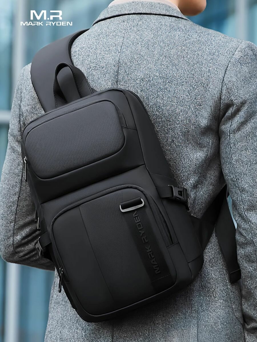 Рюкзак городской мужской однолямочный Mark Ryden средний 12л, для планшета 12.9", непромокаемый, взрослый/подростковый, цвет черный