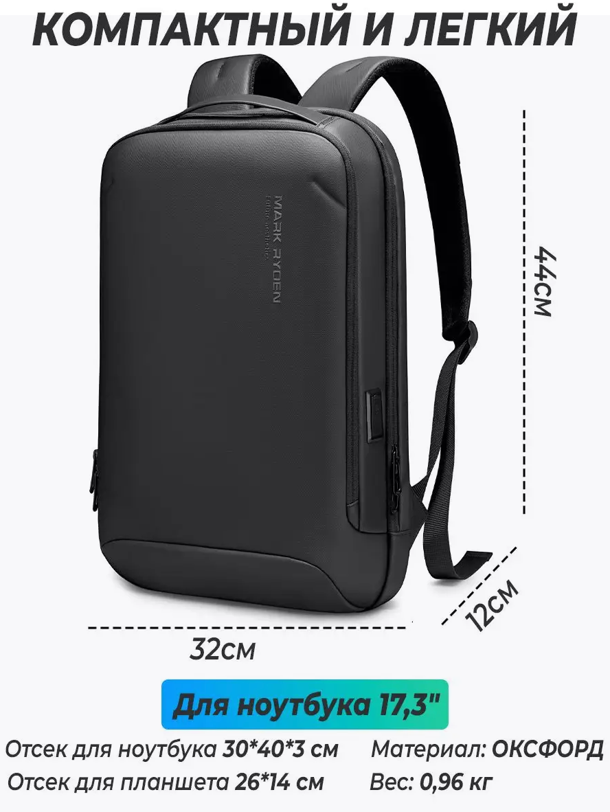Рюкзак мужской городской Mark Ryden MR9008SJ. Универсальный рюкзак для ноутбука 17,3 дюйма, влагозащитный для школы, дорожный на чемодан, для школы
