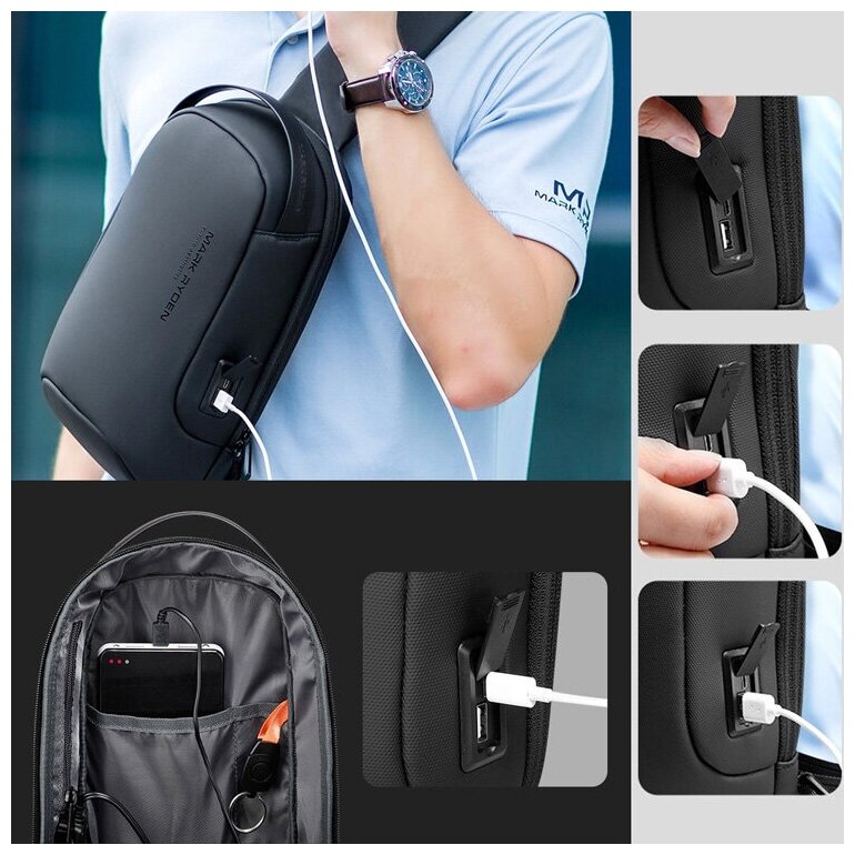 Рюкзак мужской городской маленький 8л для ноутбука 10 однолямочный Mark Ryden MR7510 Черный водонепроницаемый с USB зарядкой подростковый