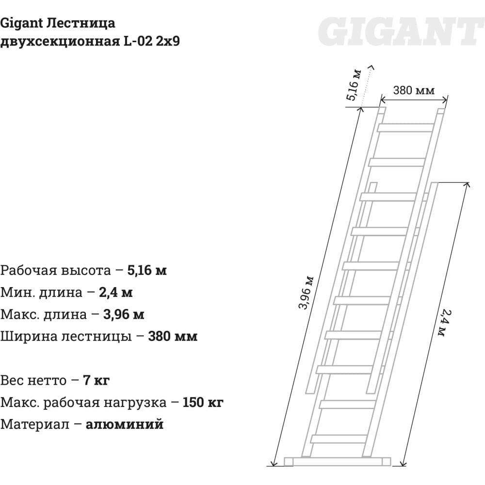 Gigant Лестница двухсекционная L-02 2x10