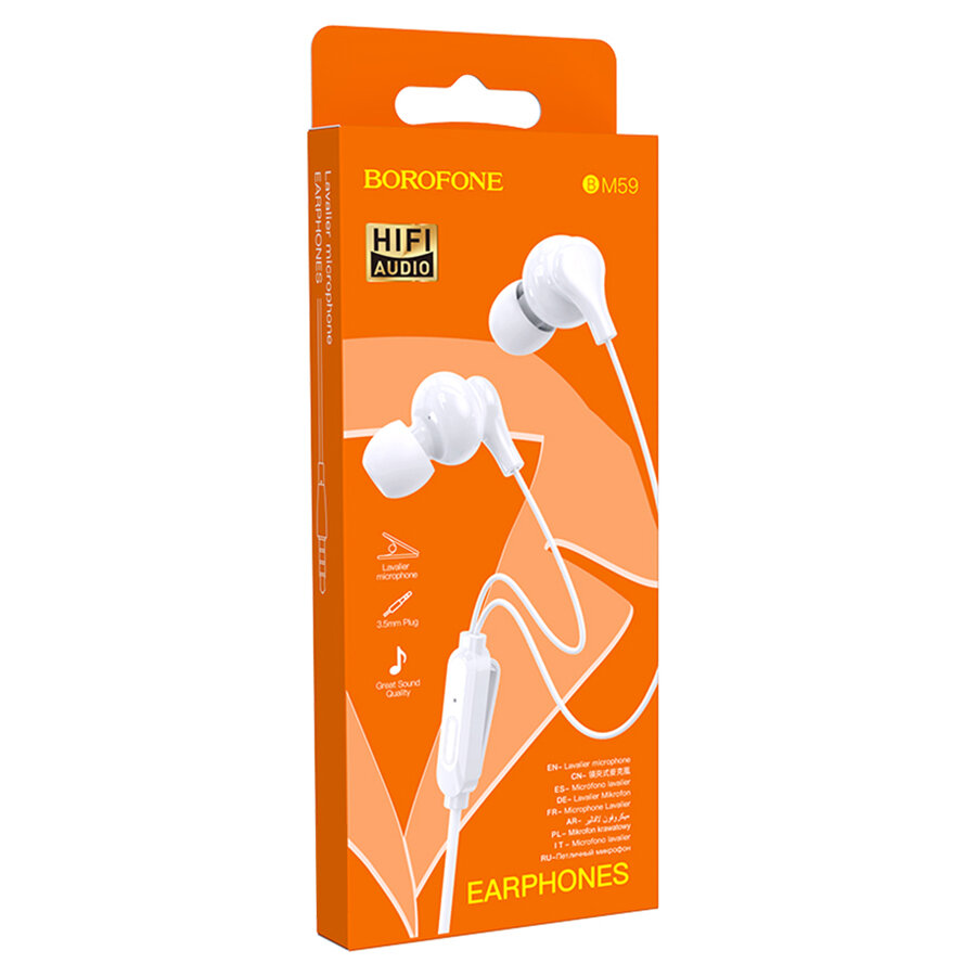 Наушники внутриканальные Borofone BM59, AUX разъём с МК без рег.громкости длина 1.2м, цвет: белый