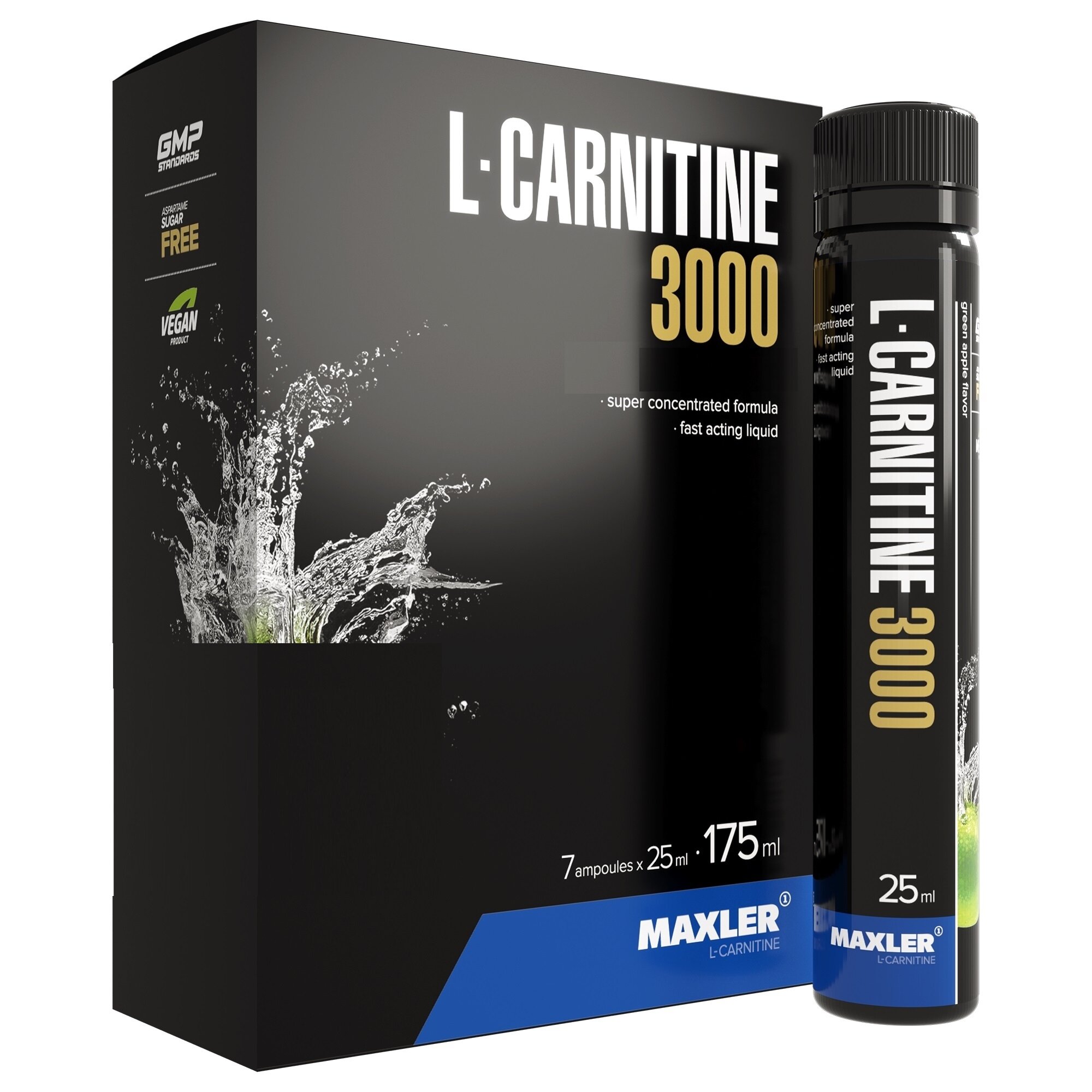 Суперконцентрированная формлуа L-карнитин L-Carnitine 3000 - 14 ампул 25 мл (Maxler) Зеленое яблоко