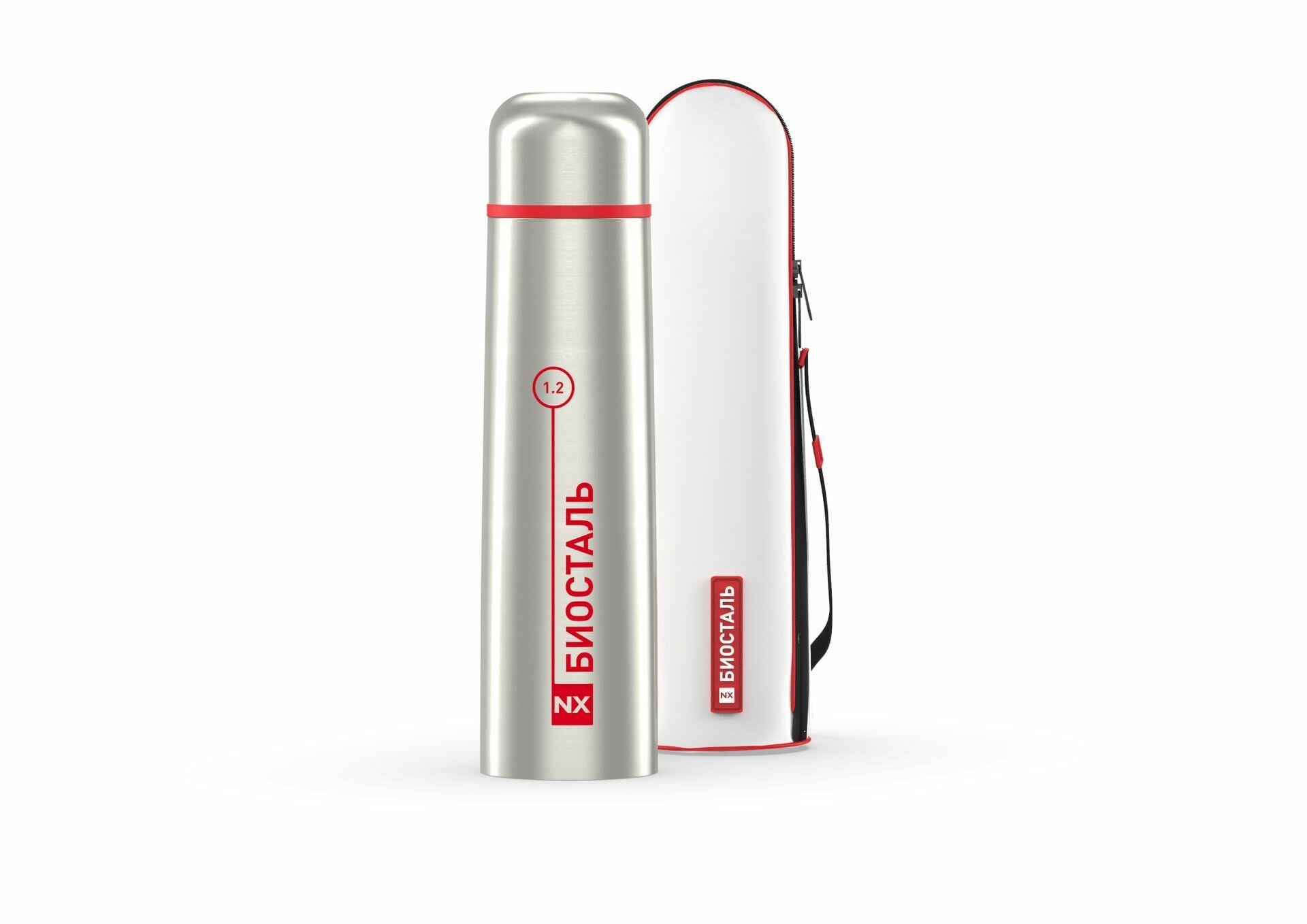 Термос биосталь NX-1000B 1л, серебристый/красный