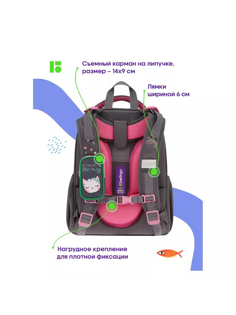СохранитьРанец Berlingo Expert "Cat Hugs" 37*28*16см, 2 отделения, 2 кармана, анатомическая спинка интересное: