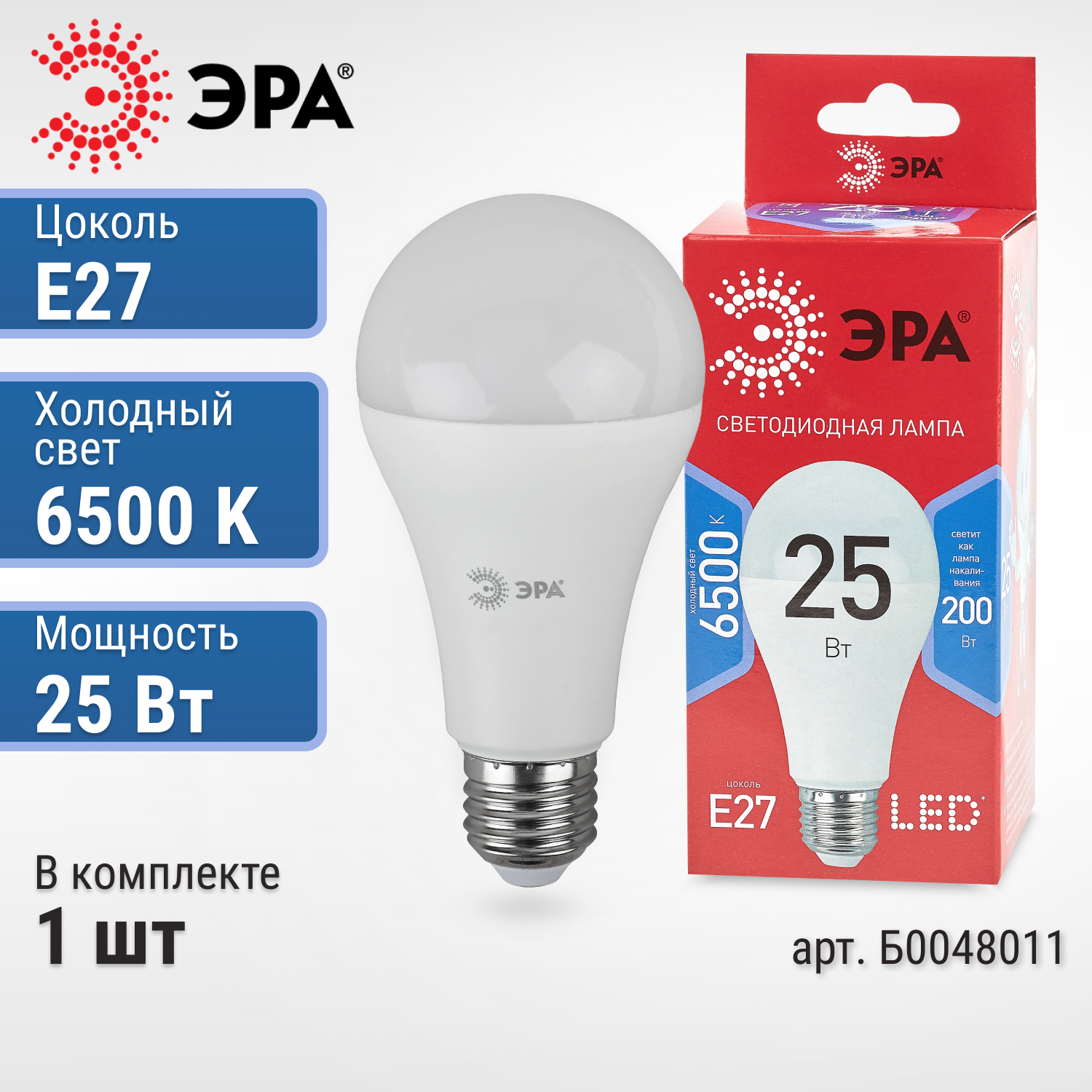 Купить Лампа светодиодная E27 ЭРА Груша, 25Вт, 6500К, лампочка 1 шт. Б0048011