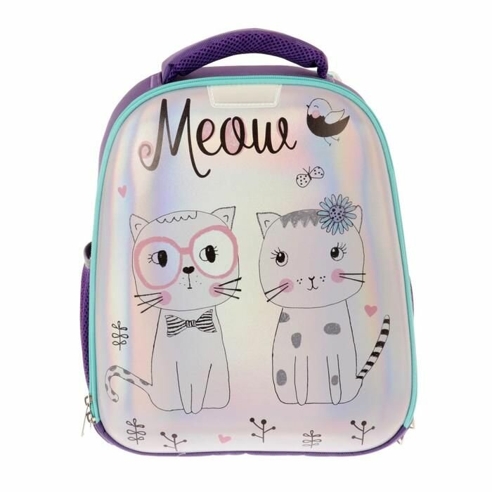 Ранец школьный №1 School Meow, экокожа, 2 отделения, ортопедическая спинка, фиолетовый