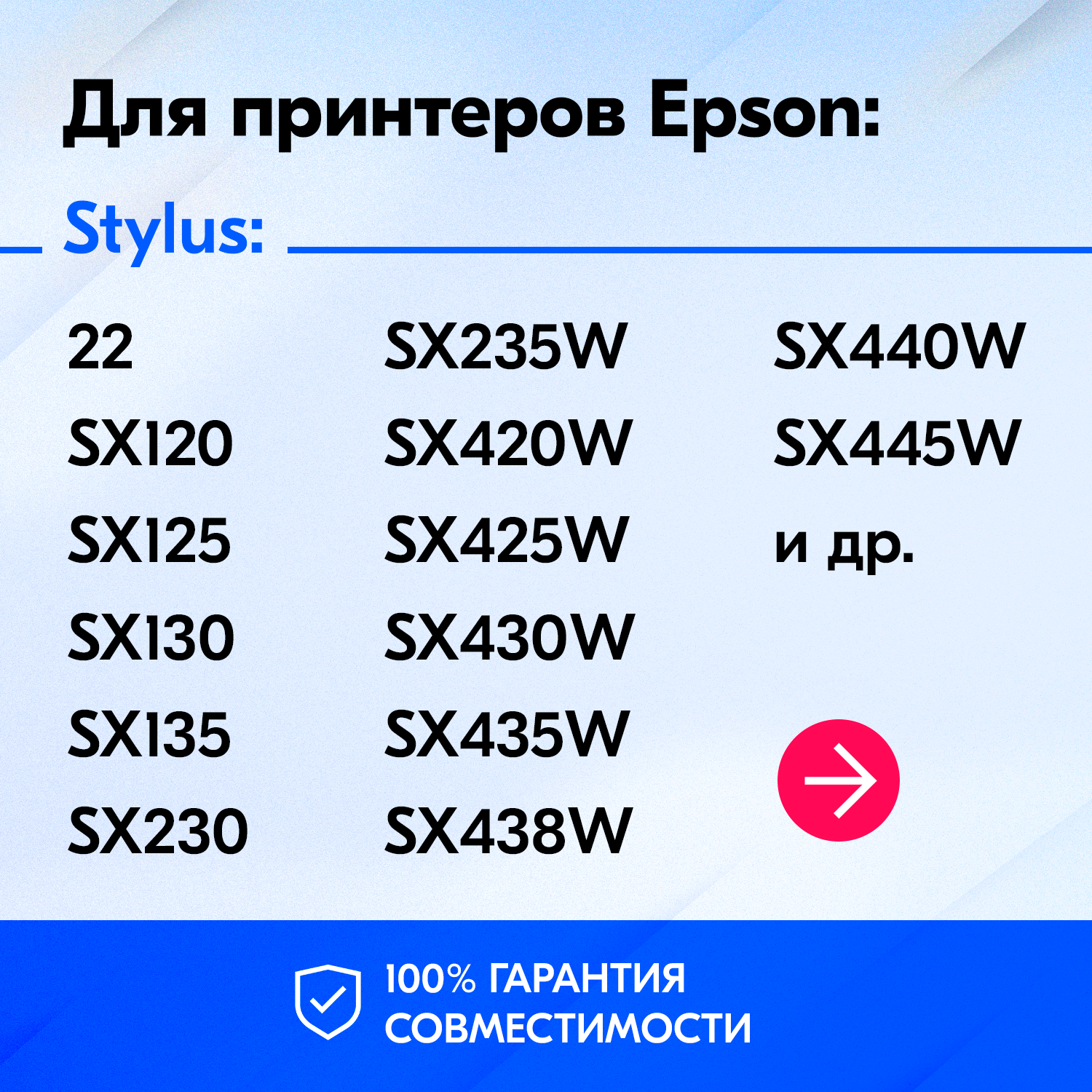 Ниже Вы можете прочитать отзывы на Картридж для Epson T1282, Epson Stylus Photo S22, SX125, SX130, SX230, SX420W, SX425W и др. с чернилами голубой новый заправляемый, ознакомится с подробными характеристиками, посмотреть интересные обзоры и фотографии на Картридж для Epson T1282, Epson Stylus Photo S22, SX125, SX130, SX230, SX420W, SX425W и др. с чернилами голубой новый заправляемый.