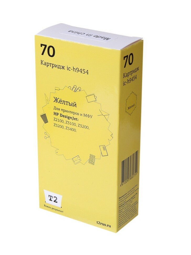 Картридж T2 (C9454A №70) для HP Designjet Z2100, Z3100, Z3200, Z5200, Z5400, желтый, с чипом, пигментный IC-H9454