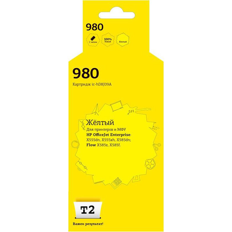 Купить Струйный картридж T2 IC-HD8J09A (D8J09A №980) для принтеров HP OfficeJet Enterprise X555dn/X555xh/X585dn/Flow X585z/X585f, с чипом, желтый