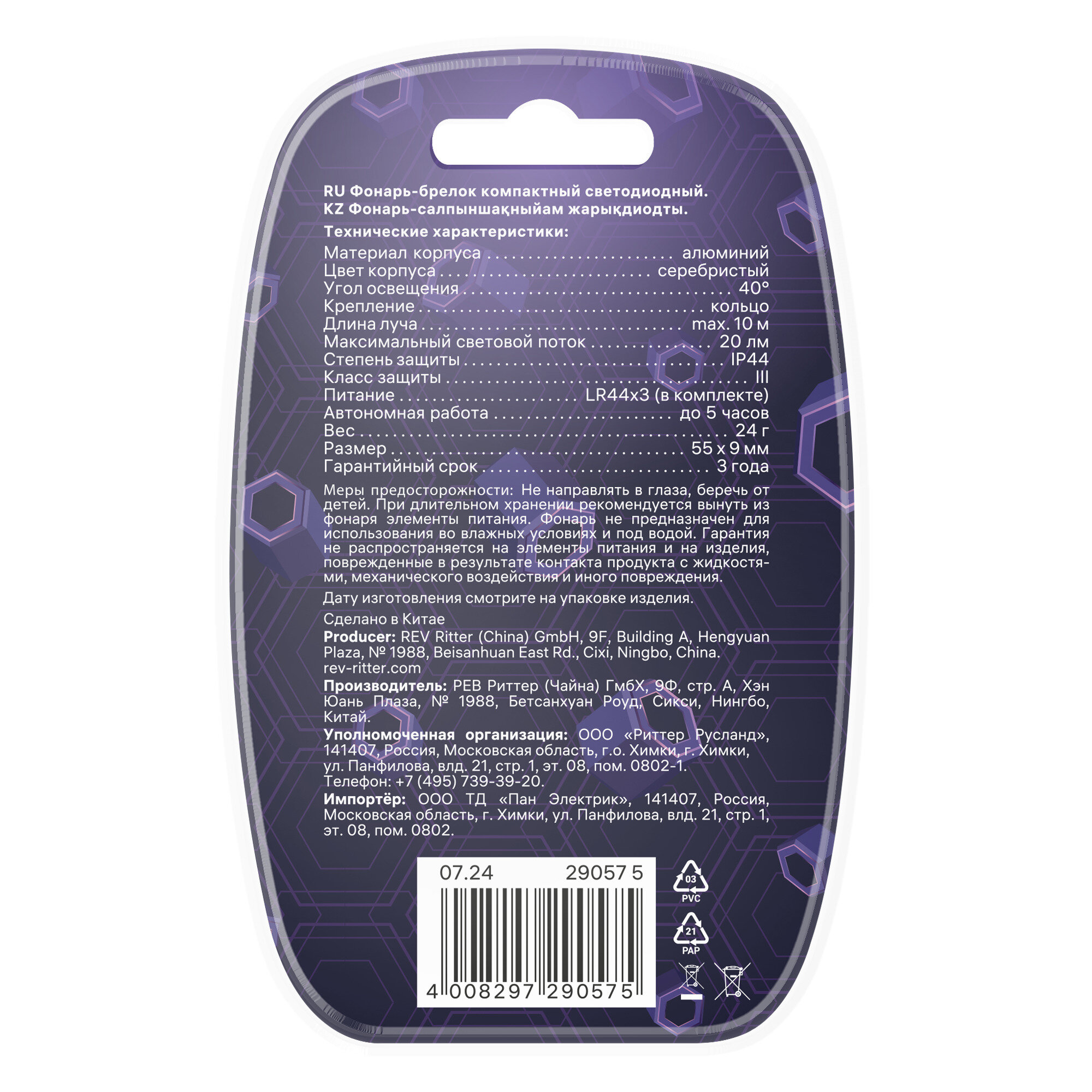 Ritter Фонарик-брелок ручной светодиодный, LED, компактный, 29057 5