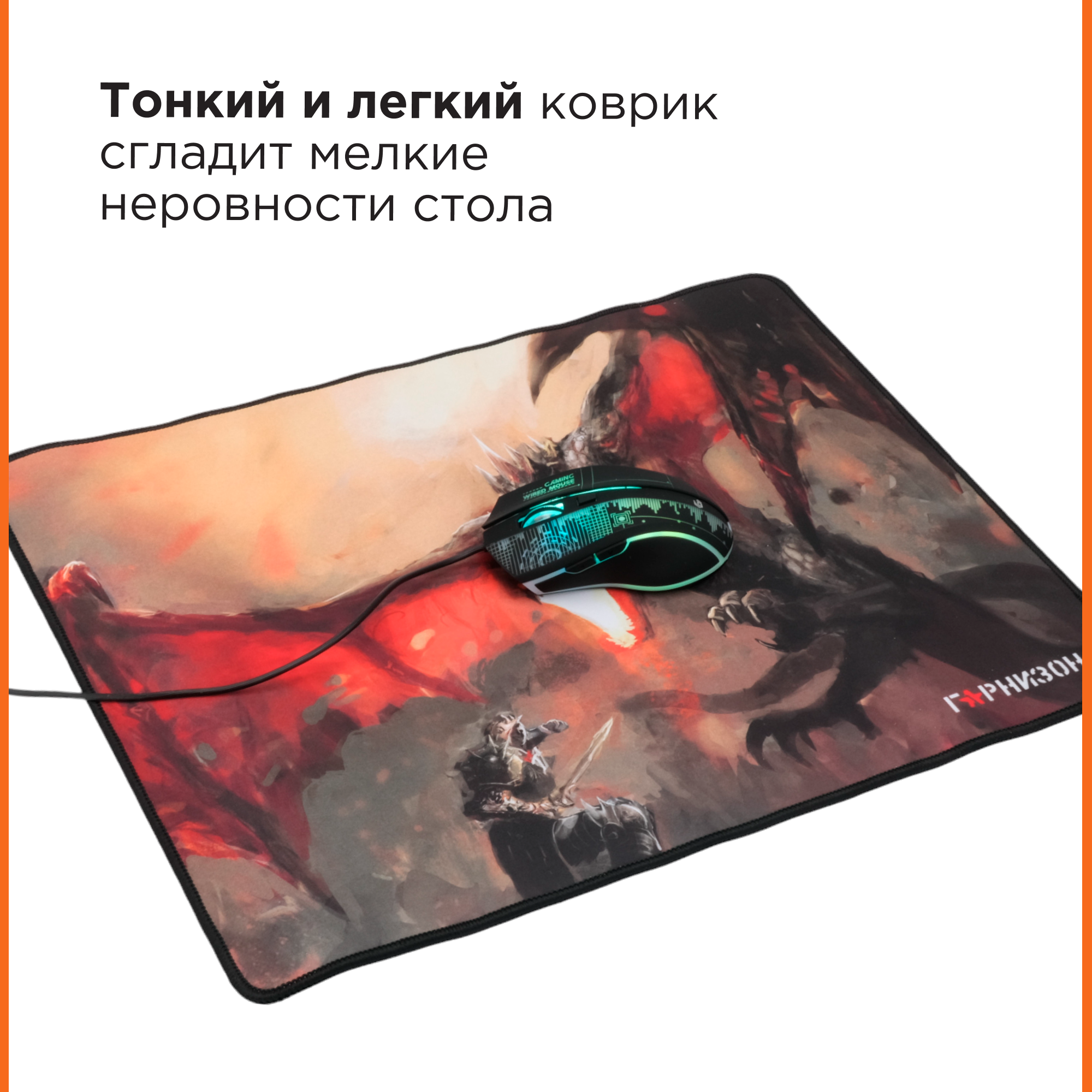 Коврик Гарнизон GMP-205 для игровой мыши 437х350х3мм ткань+вспененная резина - дракон