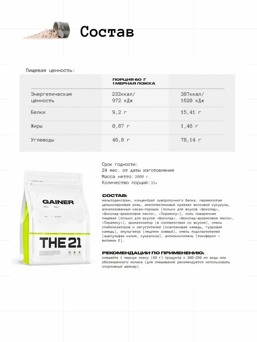 СохранитьTHE 21 Gainer Гейнер для набора массы Банановый пирог 2кг, спортивное питание для набора массы тела интересное: