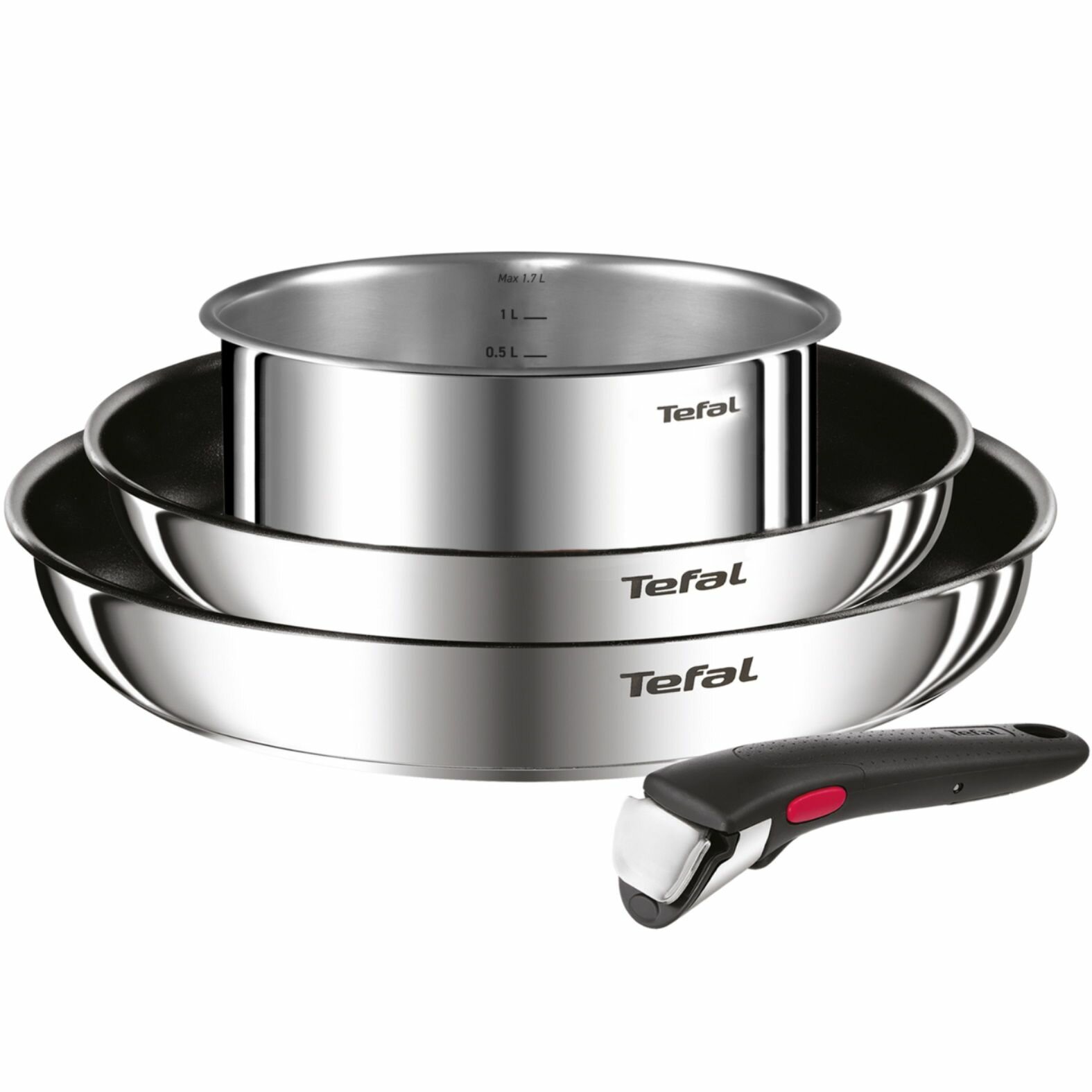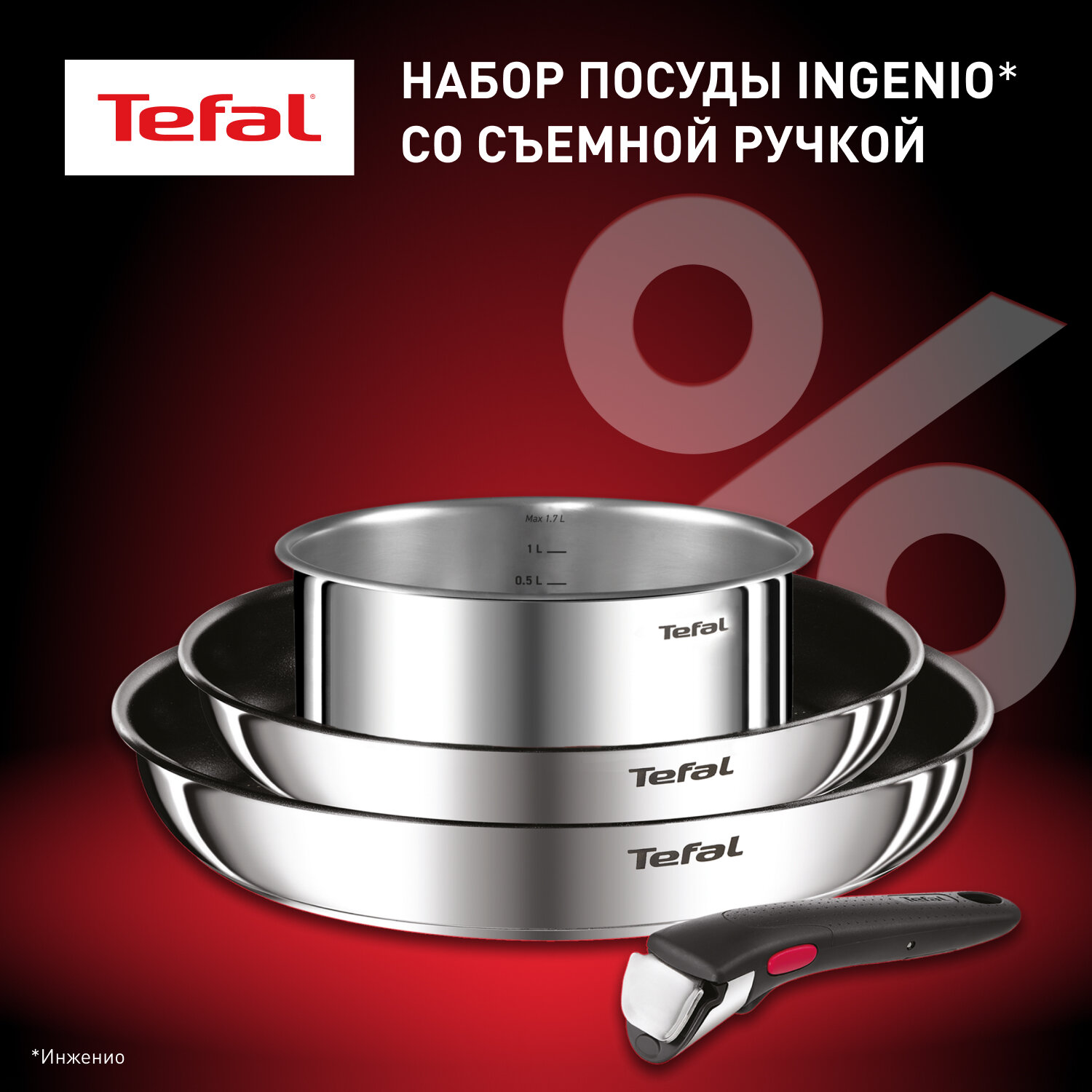 Набор посуды со съемной ручкой Tefal Ingenio Cook Eat L881S404, 4 предмета, с индикатором нагрева, нержавеющая сталь, подходит для всех типов плит, включая индукцию