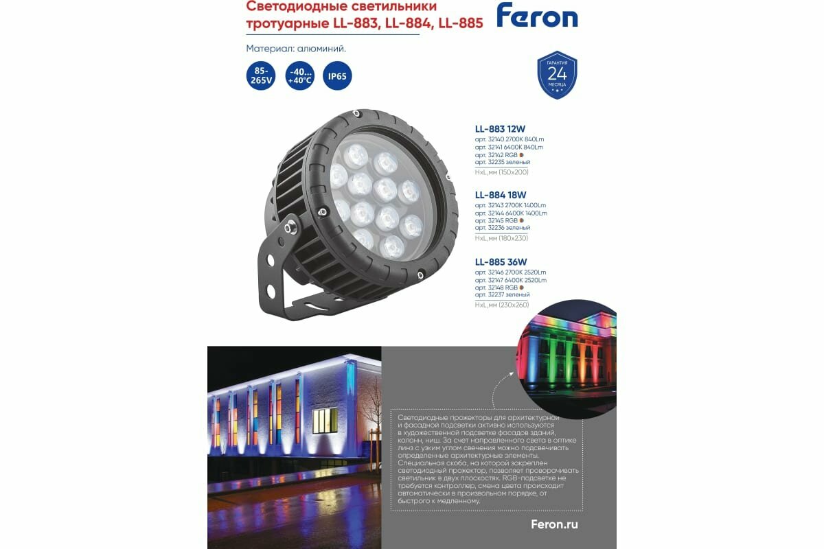 Feron LL-884 Прожектор ландшафтно-архитектурный светодиодный, 18W 1 шт.